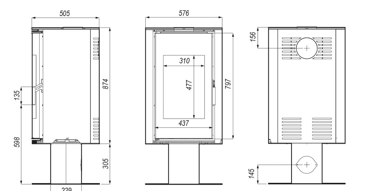 ПлитаORBIS доступна в трех вариантах ORBIS LOG- с выемкой для дерева, ORBISBOX в компактном корпусе с функциональной нишей и ORBIS TOP - на ножке.Возможность подачи воздуха в печь снизу и задней части печи.