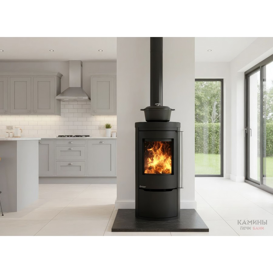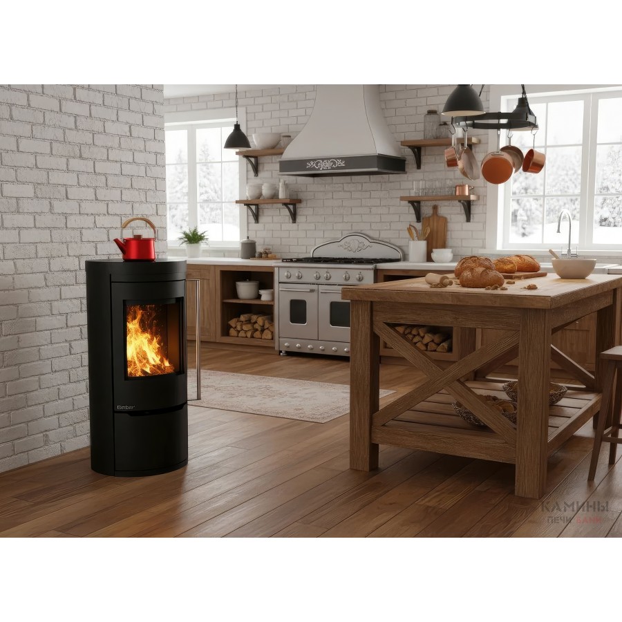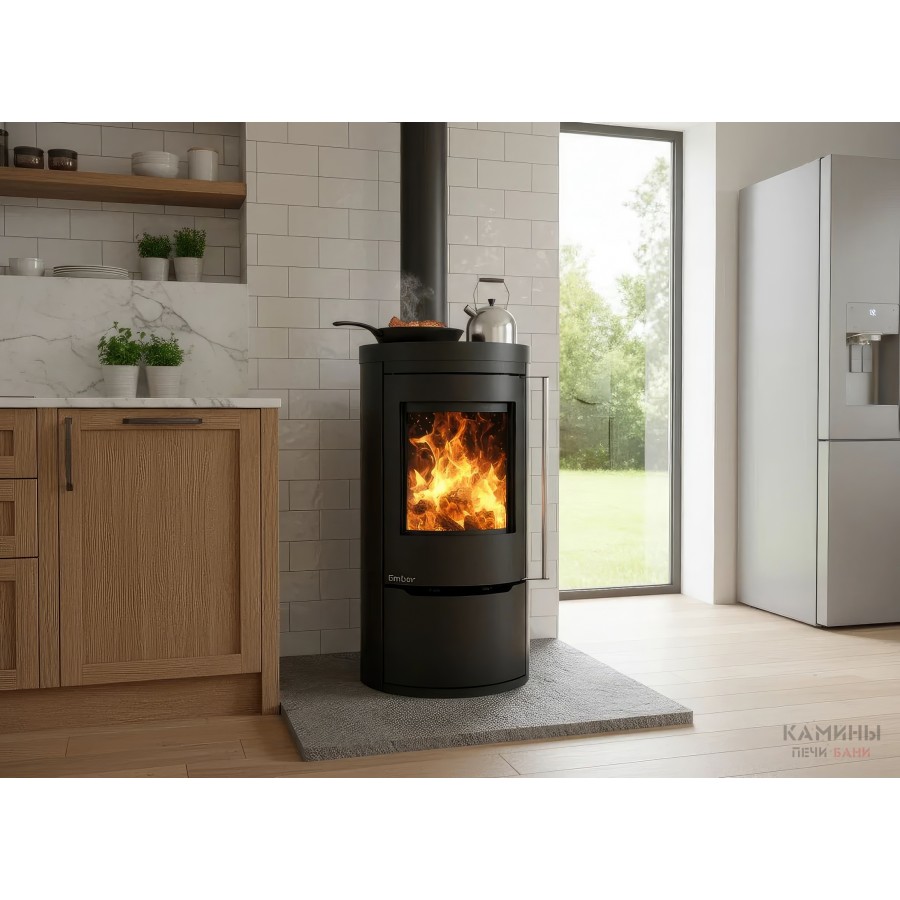 Печь-камин Ember Cook — это воплощение домашнего уюта и практичности. Модель разработана специально для тех, кто ценит автономность и многофункциональность. Верхняя часть корпуса представляет собой полноценную варочную поверхность из высококачественной котловой стали, на которой можно разогревать или готовить пищу, пока камин отапливает помещение.