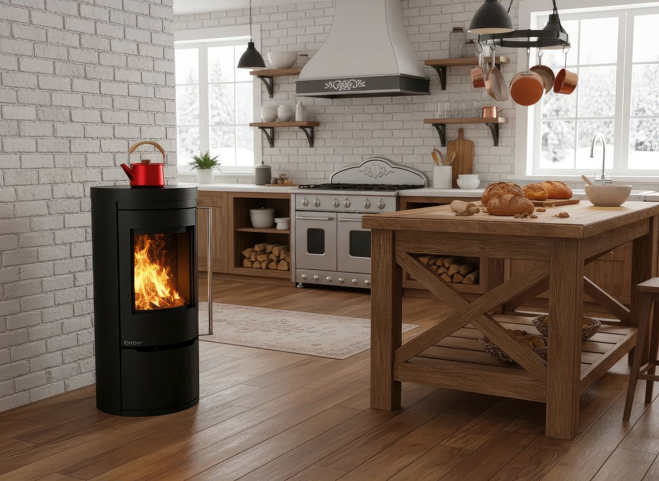 - 2-в-1: Отопление и кухня: Печь эффективно заменяет собой и мощный отопительный прибор, и кухонную плиту, что особенно ценно в загородных домах.