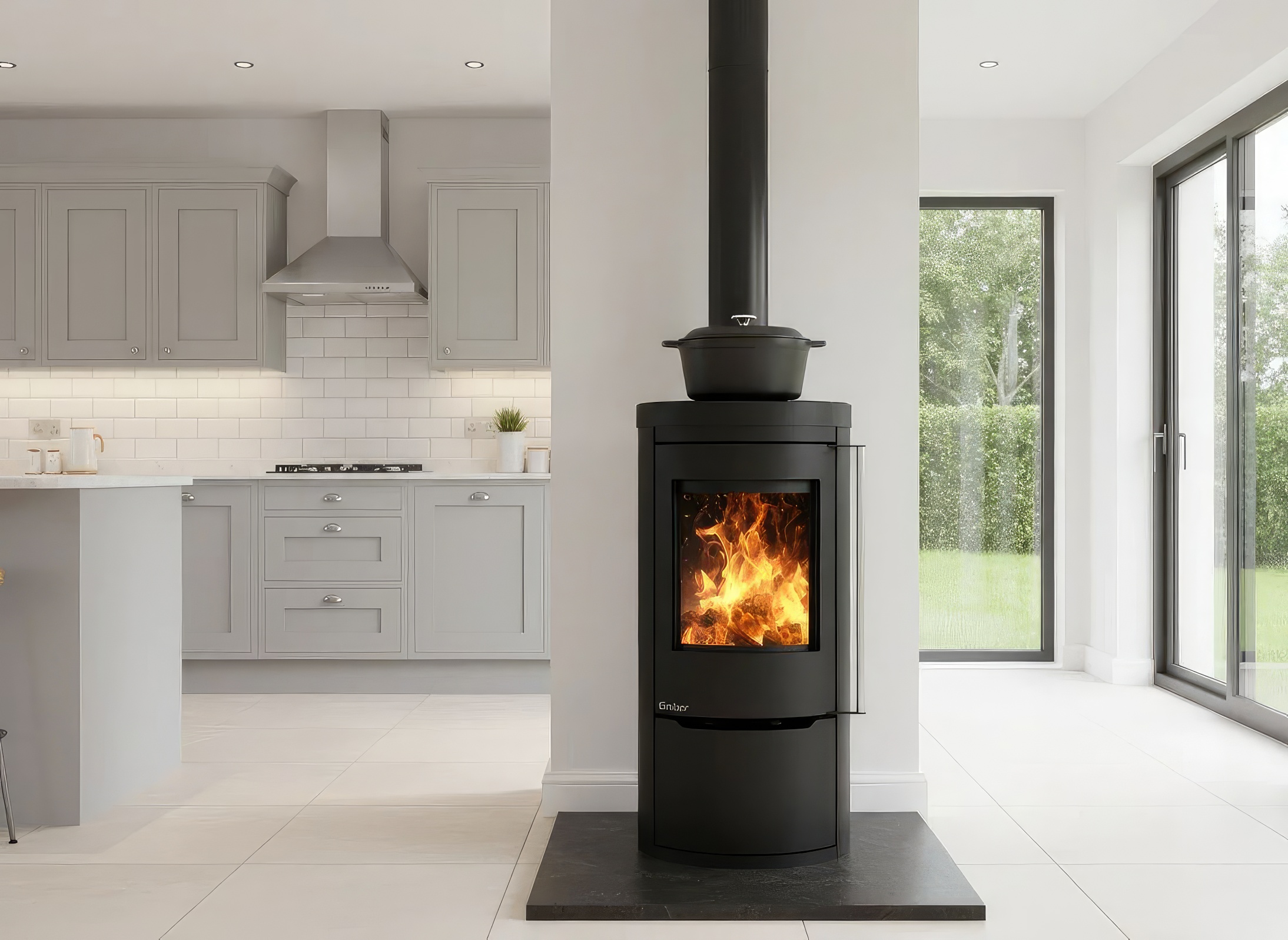 - Подключение свежего воздуха Ø100 мм для эффективной работы