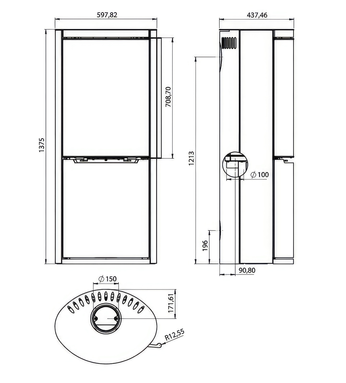 | Диаметр дымохода | 150 мм |