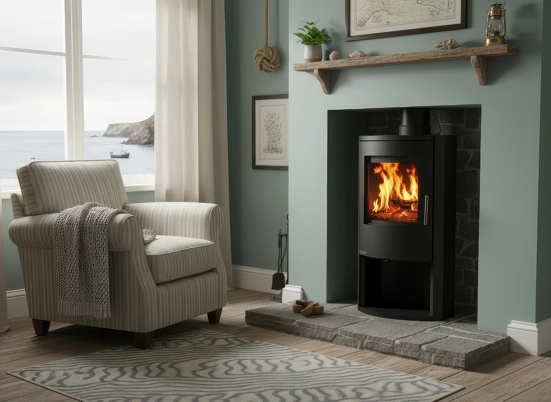- Простота эксплуатации: Удобная ручка дверцы и интуитивно понятные регулировки подачи воздуха обеспечивают полный контроль над интенсивностью горения.