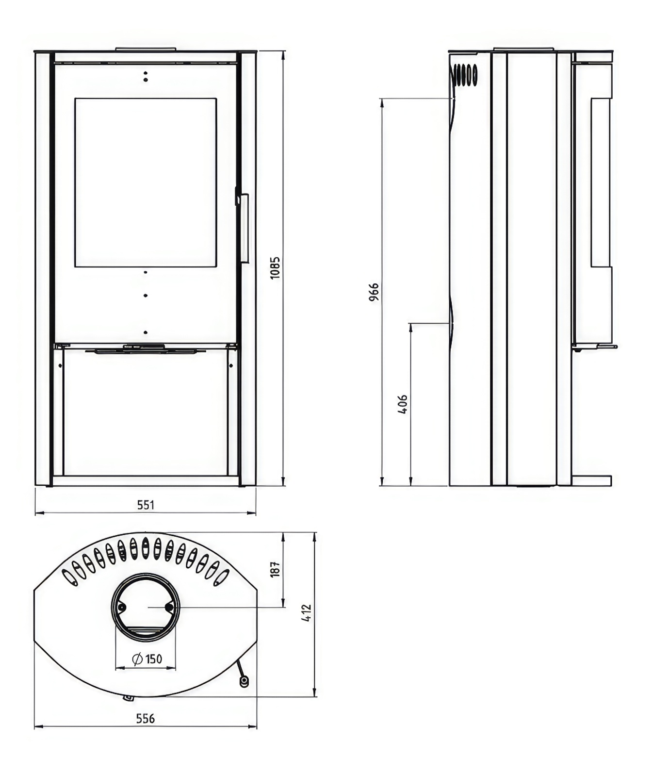 | Диаметр дымохода | 150 мм |