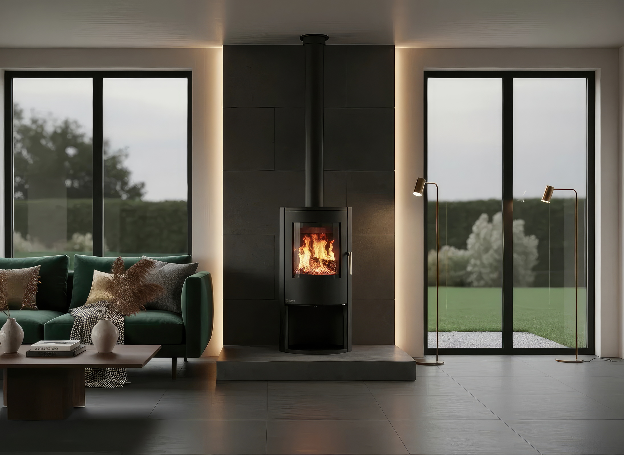 Корпус печи изготовлен из высококачественной котловой стали. Топочная камера защищена вермикулитовой футеровкой, которая повышает температуру горения, увеличивая КПД и снижая количество выбросов. Жаропрочное керамическое стекло выдерживает температуру до 750°C, позволяя безопасно любоваться живым огнем.