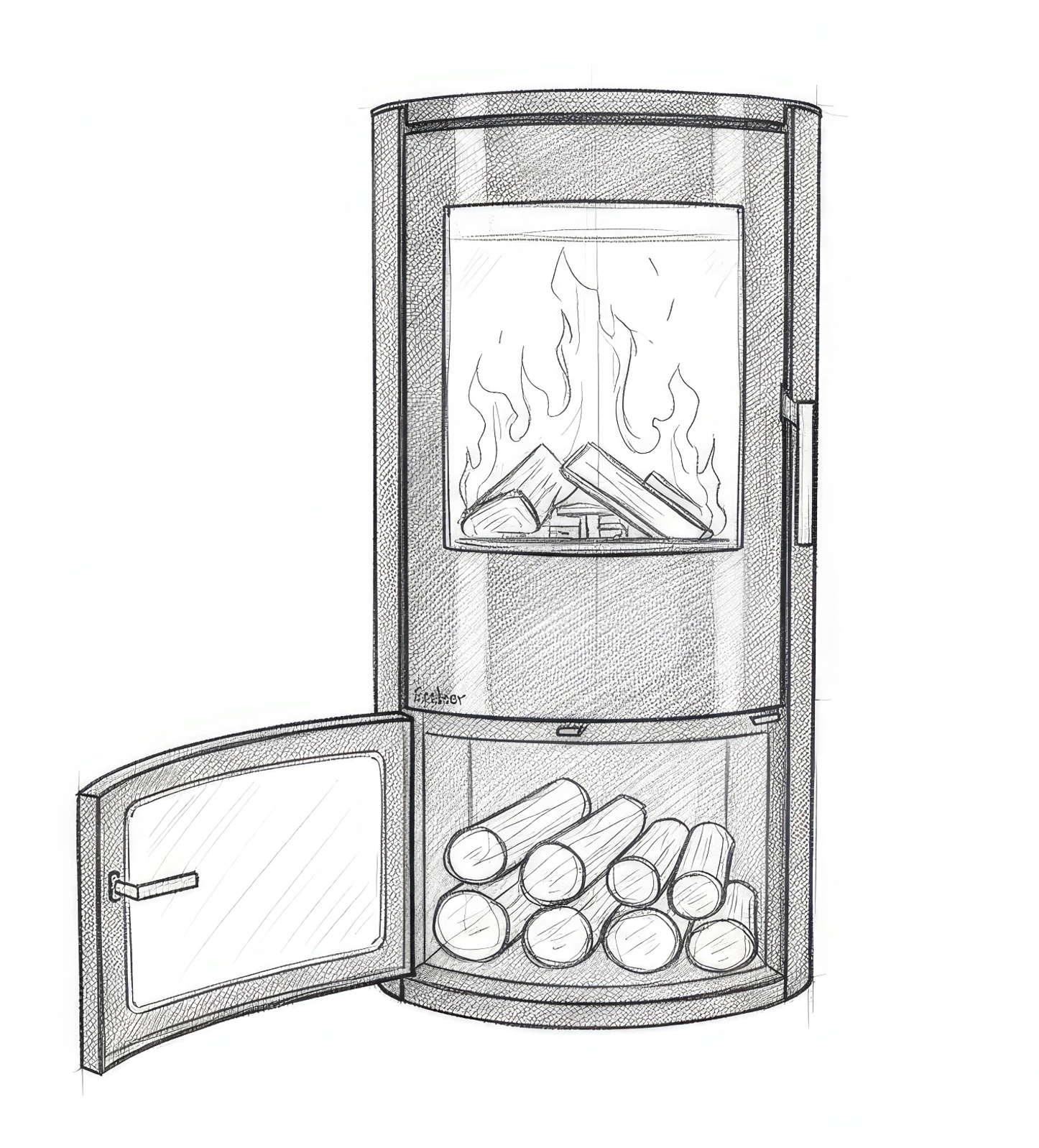 - Практичная дровница: В нижней части корпуса расположена открытая ниша, которая обеспечивает естественную вентиляцию и досушивание дров прямо перед использованием.