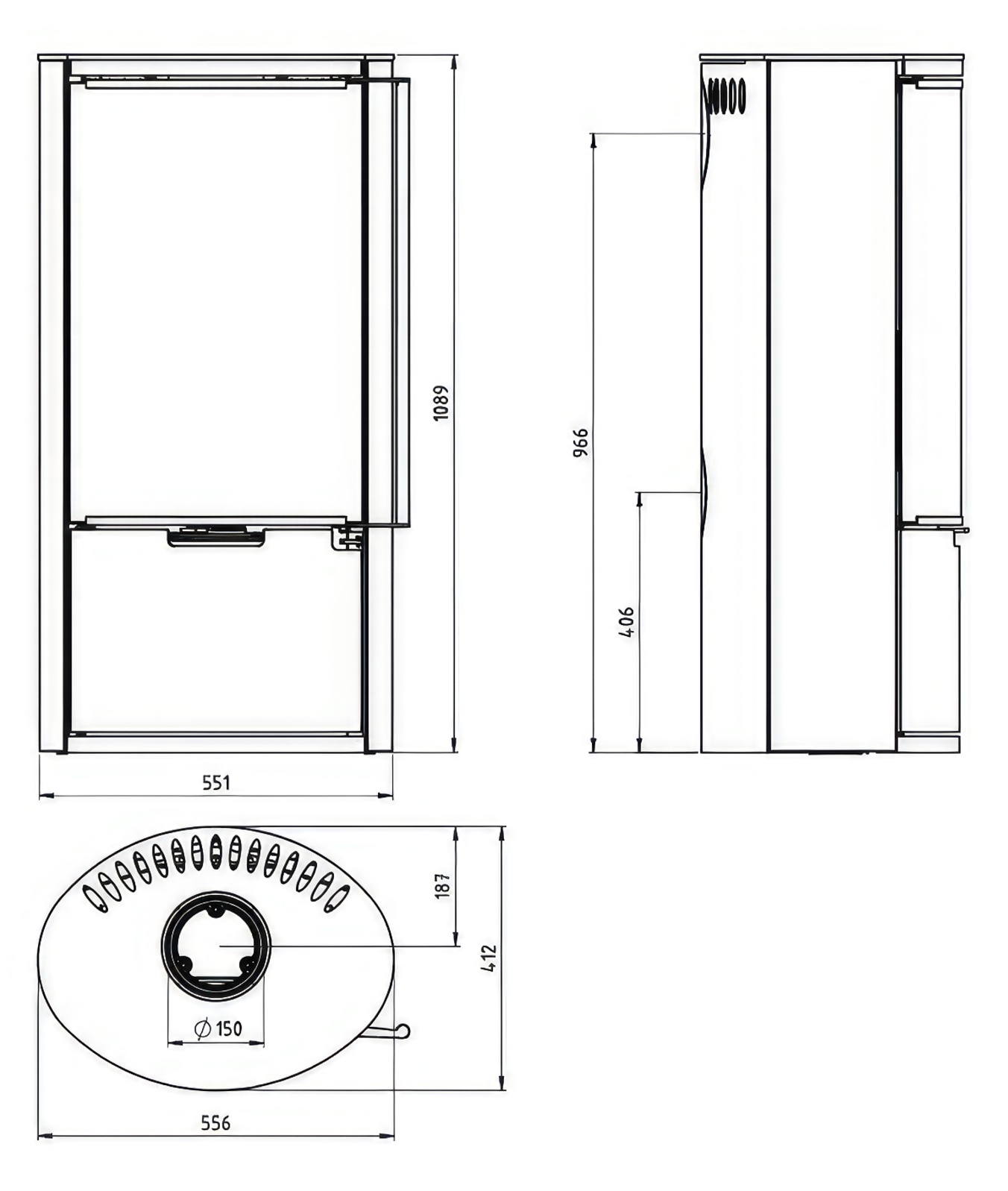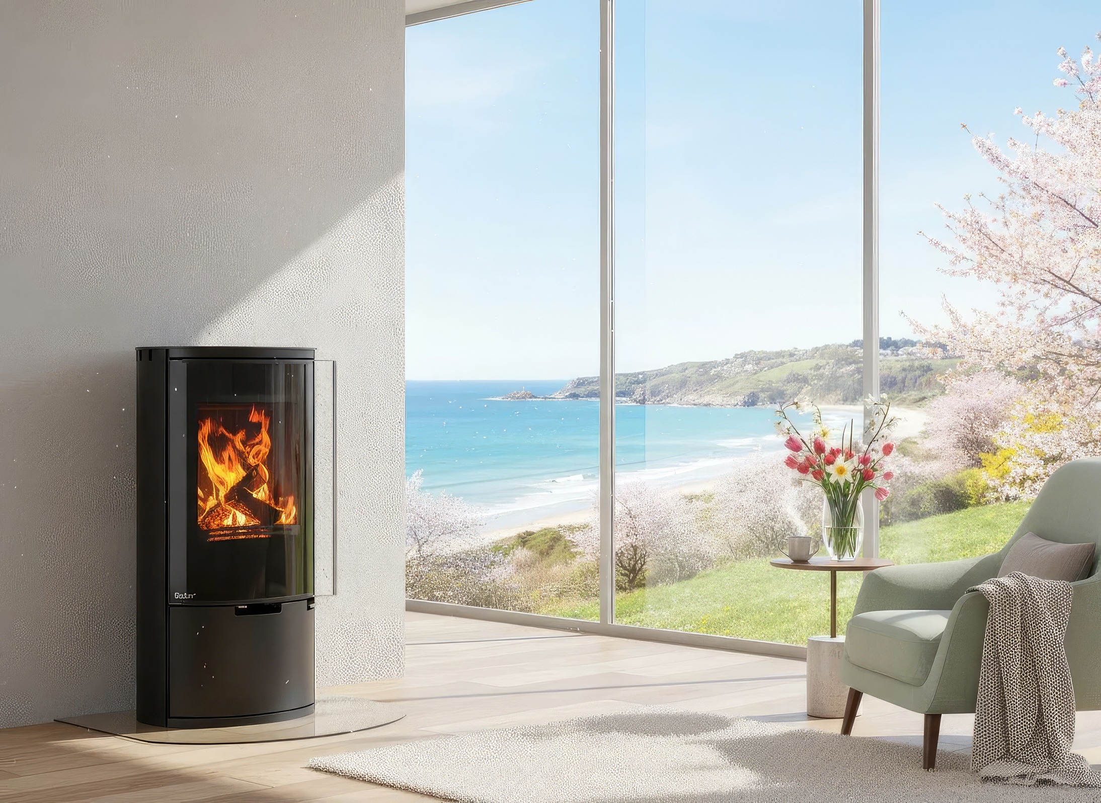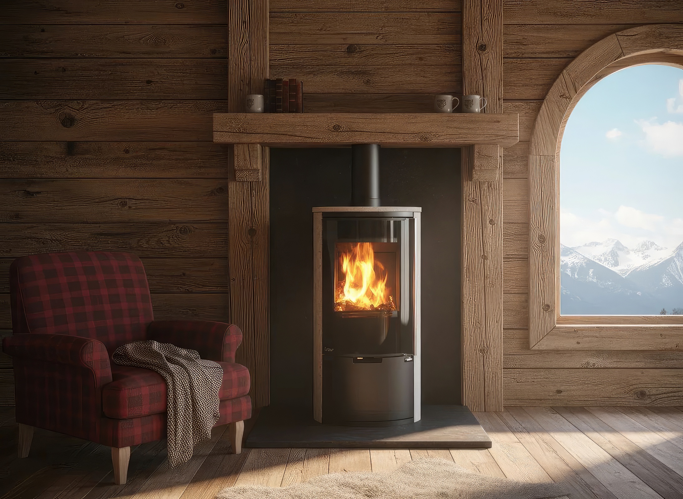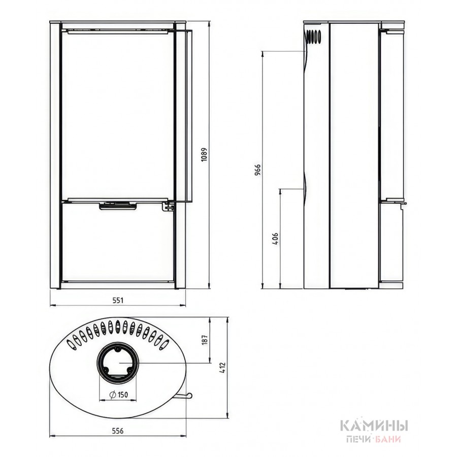 Внутренняя облицовка из вермикулита высокой плотности защищает стальной корпус и способствует самоочистке стекла за счет высокой температуры в камере. В нижней части печи расположена открытая дровница, которая не только удобна в эксплуатации, но и дополняет уютный образ дровяного камина.
