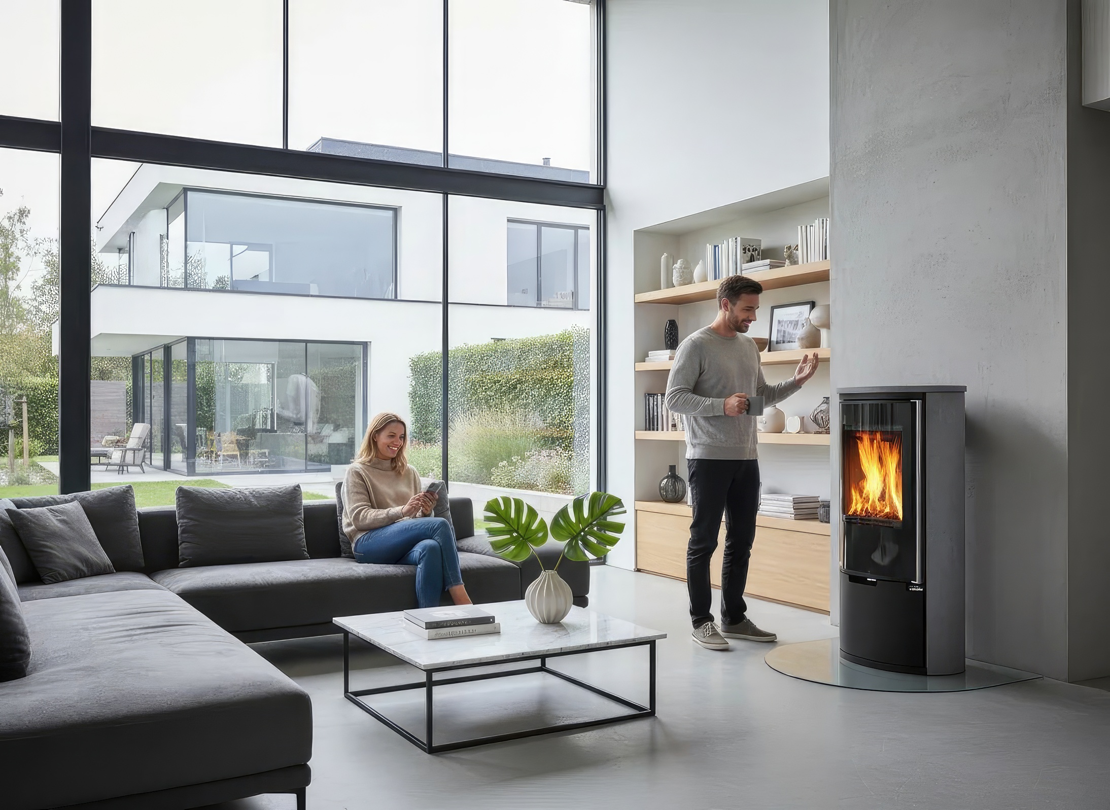 - Высокая мощность до 8 кВт: Увеличенная высота корпуса (более 1.1 м) и объемная топка позволяют эффективно отапливать просторные загородные дома.