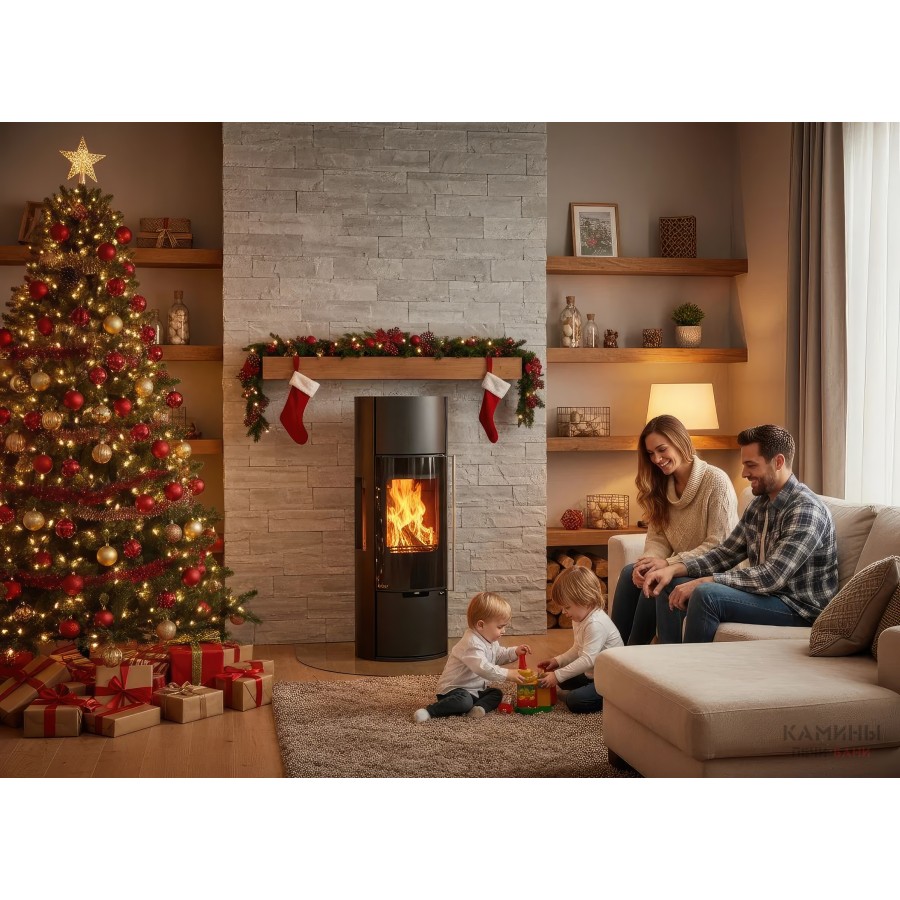 - Высокая энергоэффективность: КПД 82% гарантирует экономный расход дров и быстрый прогрев помещений площадью до 70-75 м².