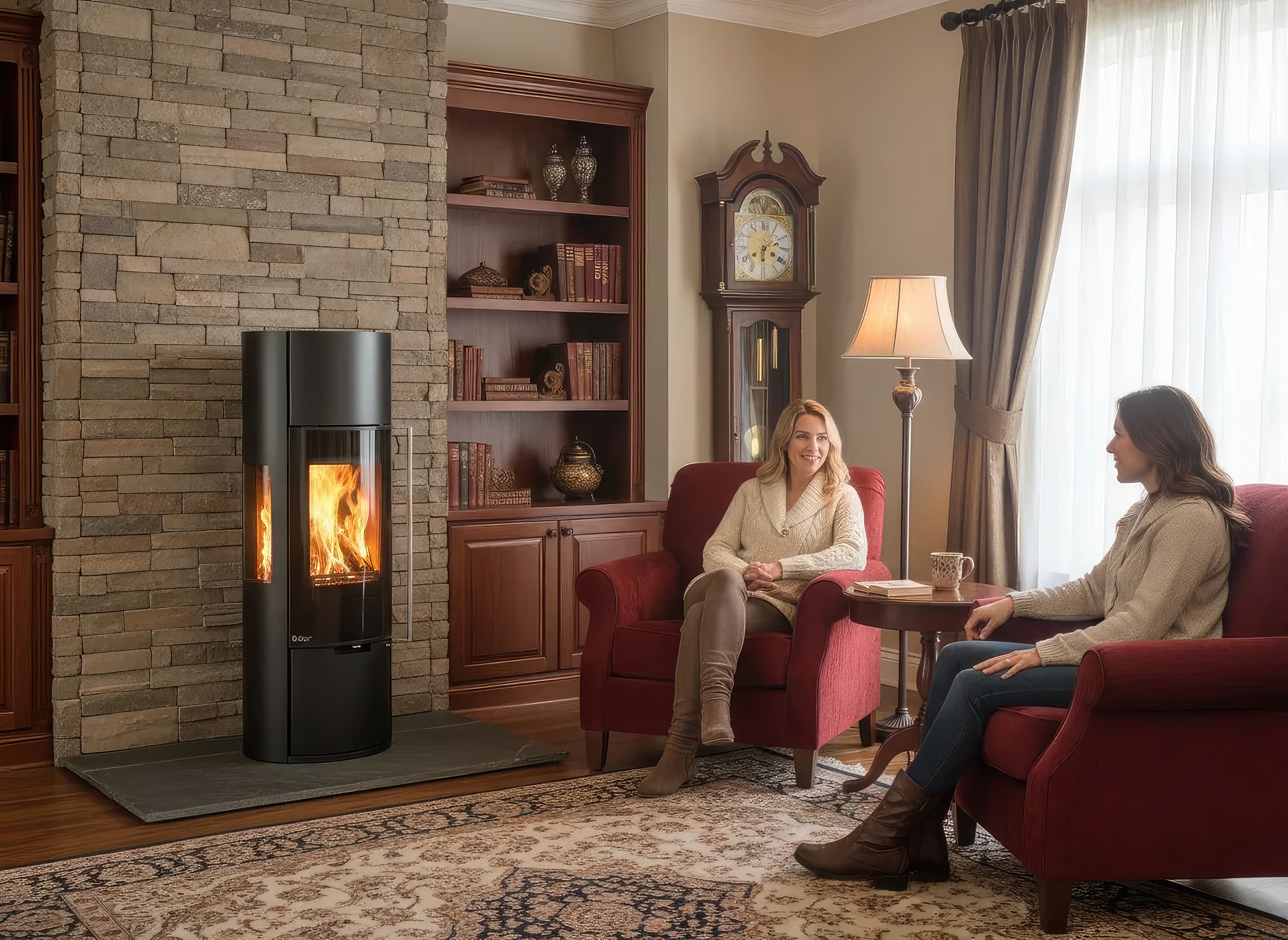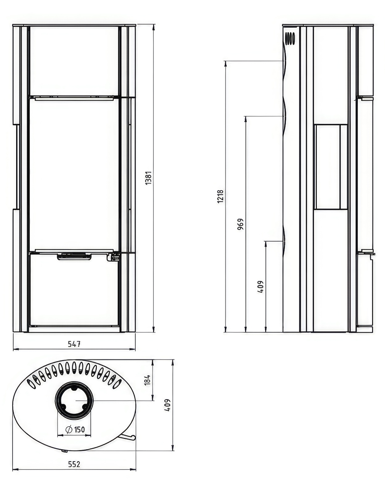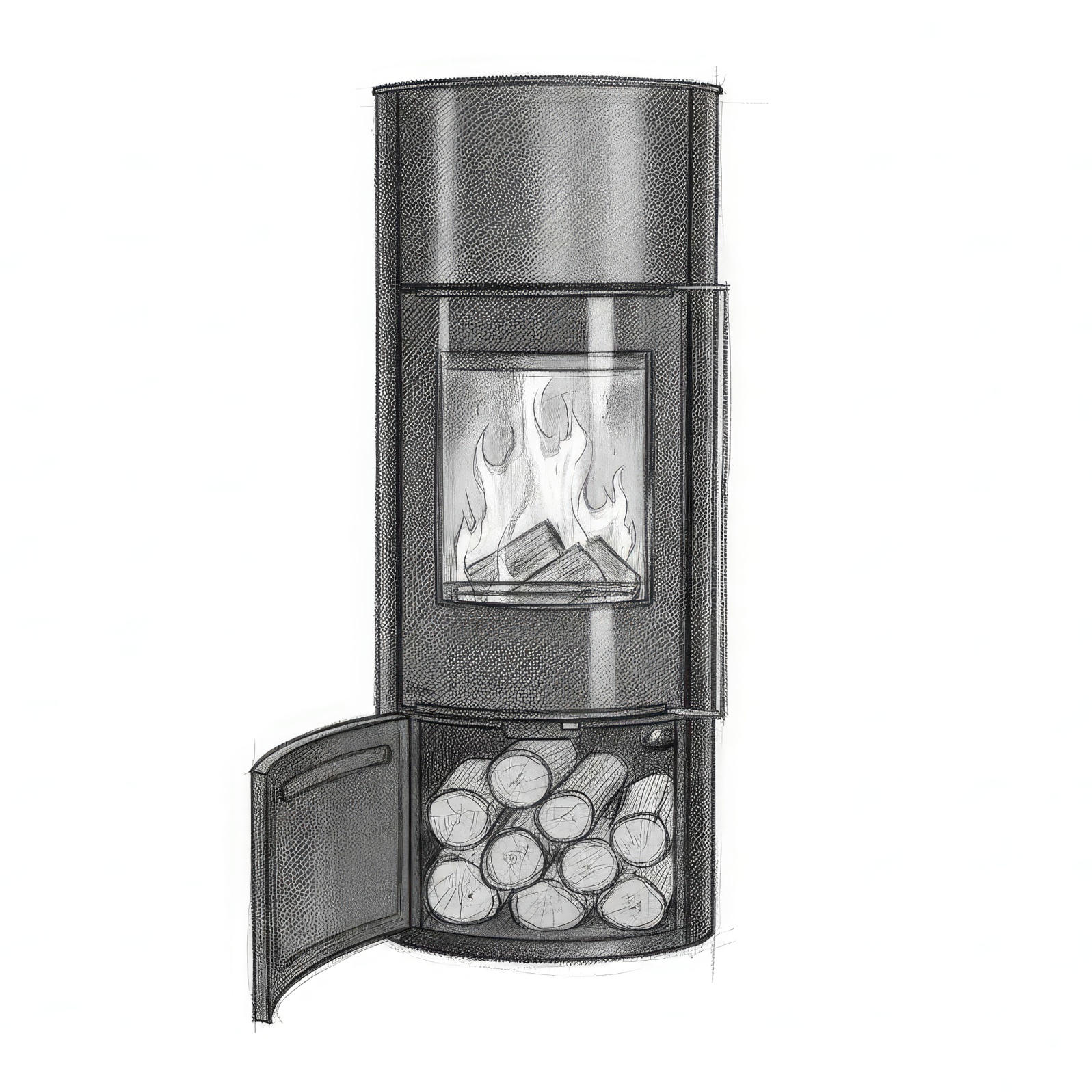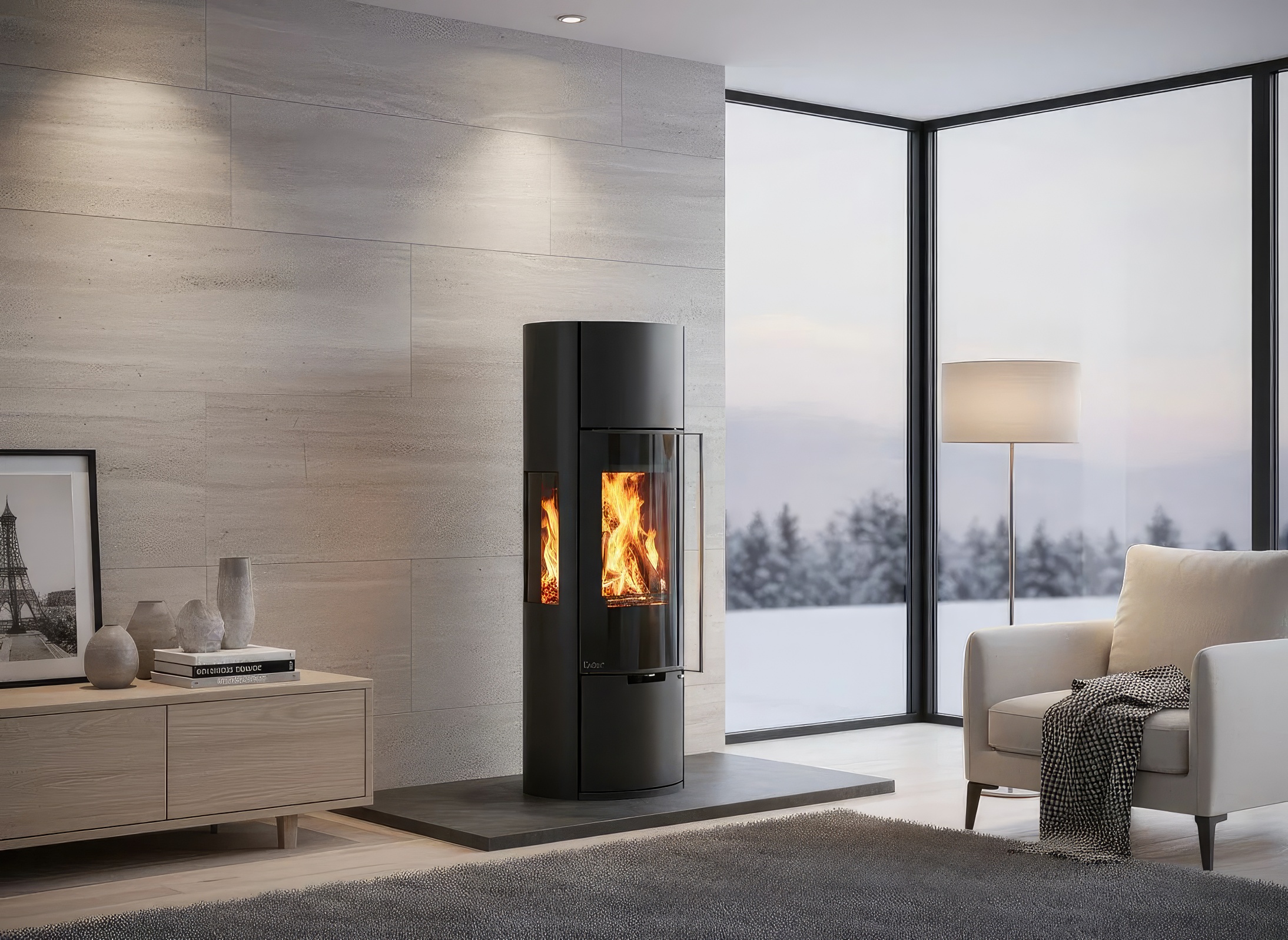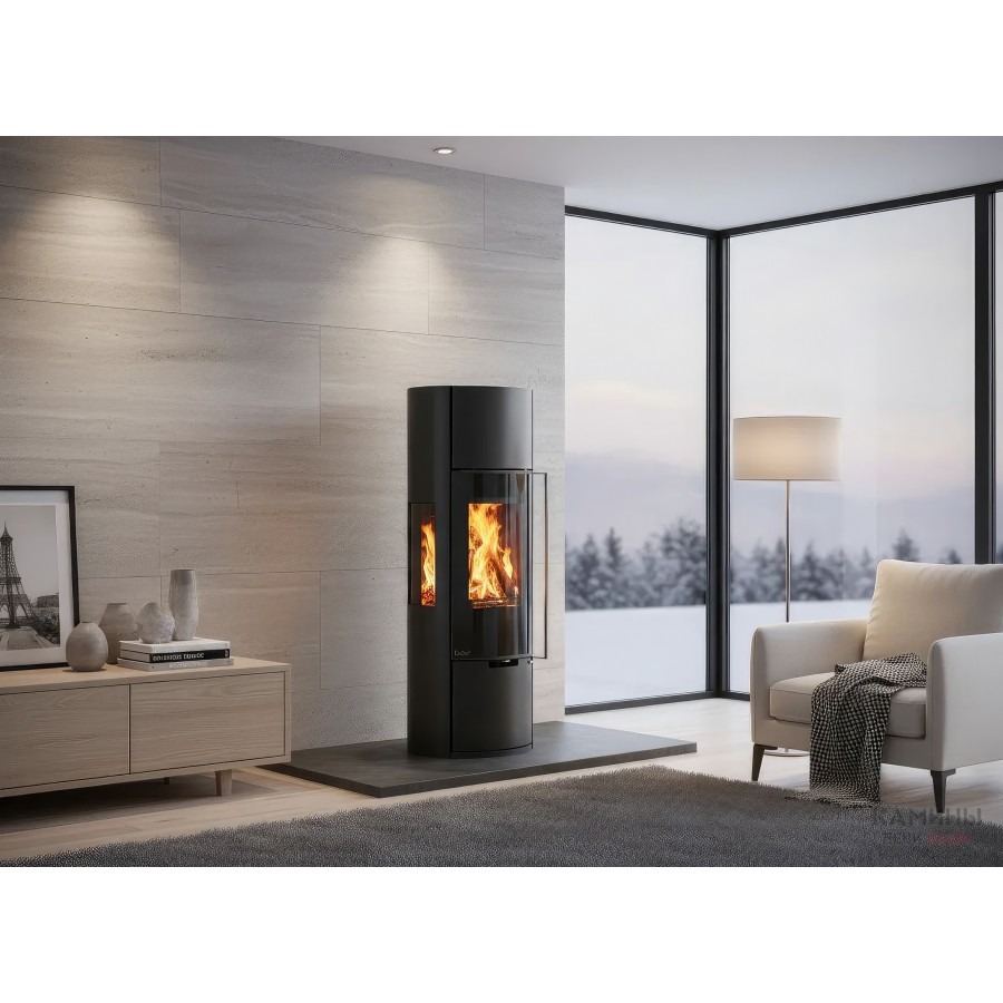 - Герметичное 3‑точечное закрытие дверцы для эффективного контроля горения.