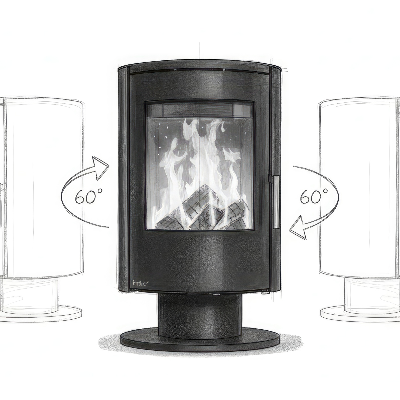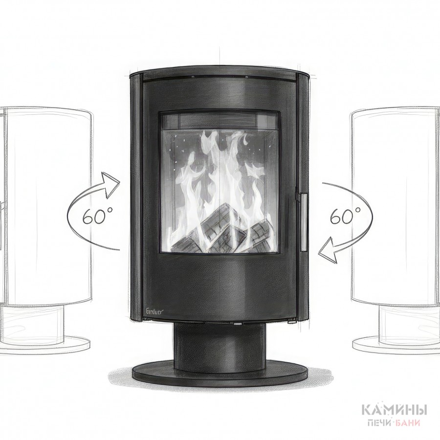 - Поворотная база (на некоторых версиях) для оптимального направления тепла и обзора огня.