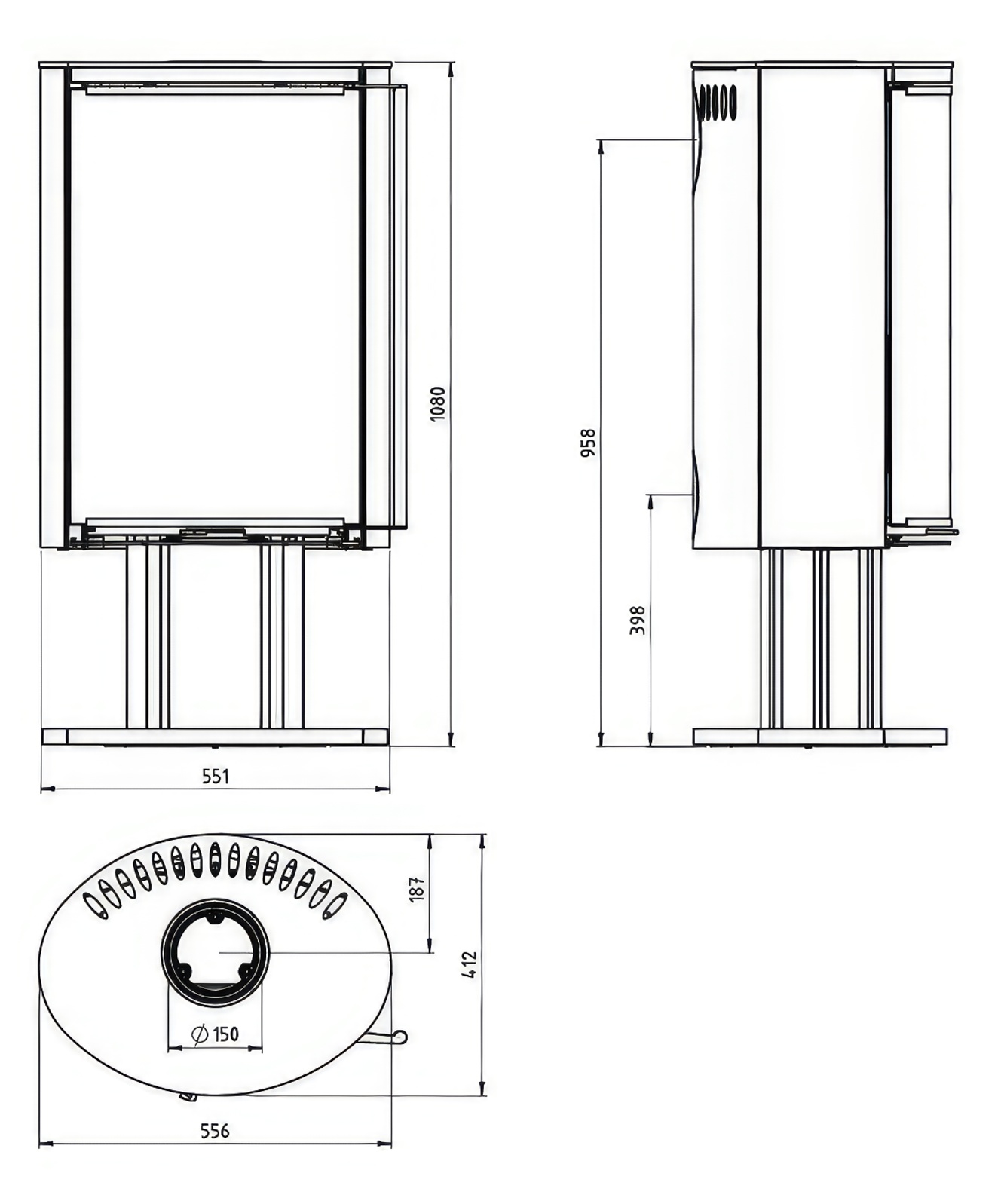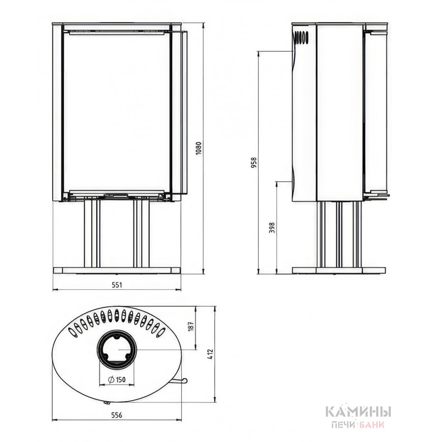 | Диаметр дымохода | 150 мм |