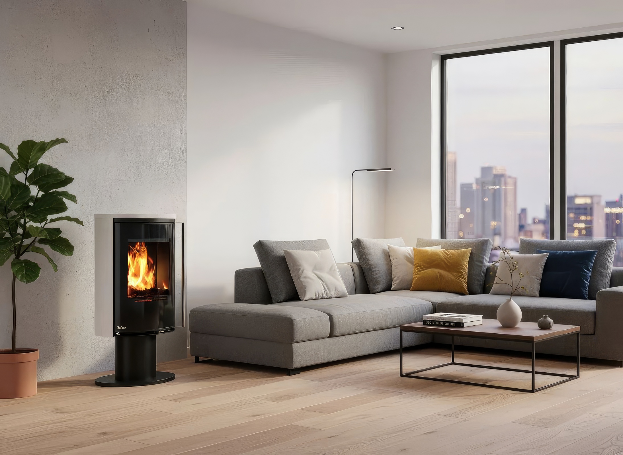 Печь-камин Ember E15 XL FG — это флагманская модель в семействе E15, созданная для тех, кто хочет сделать огонь главным акцентом в доме. Благодаря увеличенной высоте корпуса (1290 мм), топочная камера приподнята на идеальный уровень обзора, а сама печь выглядит величественно даже в помещениях с высокими потолками.