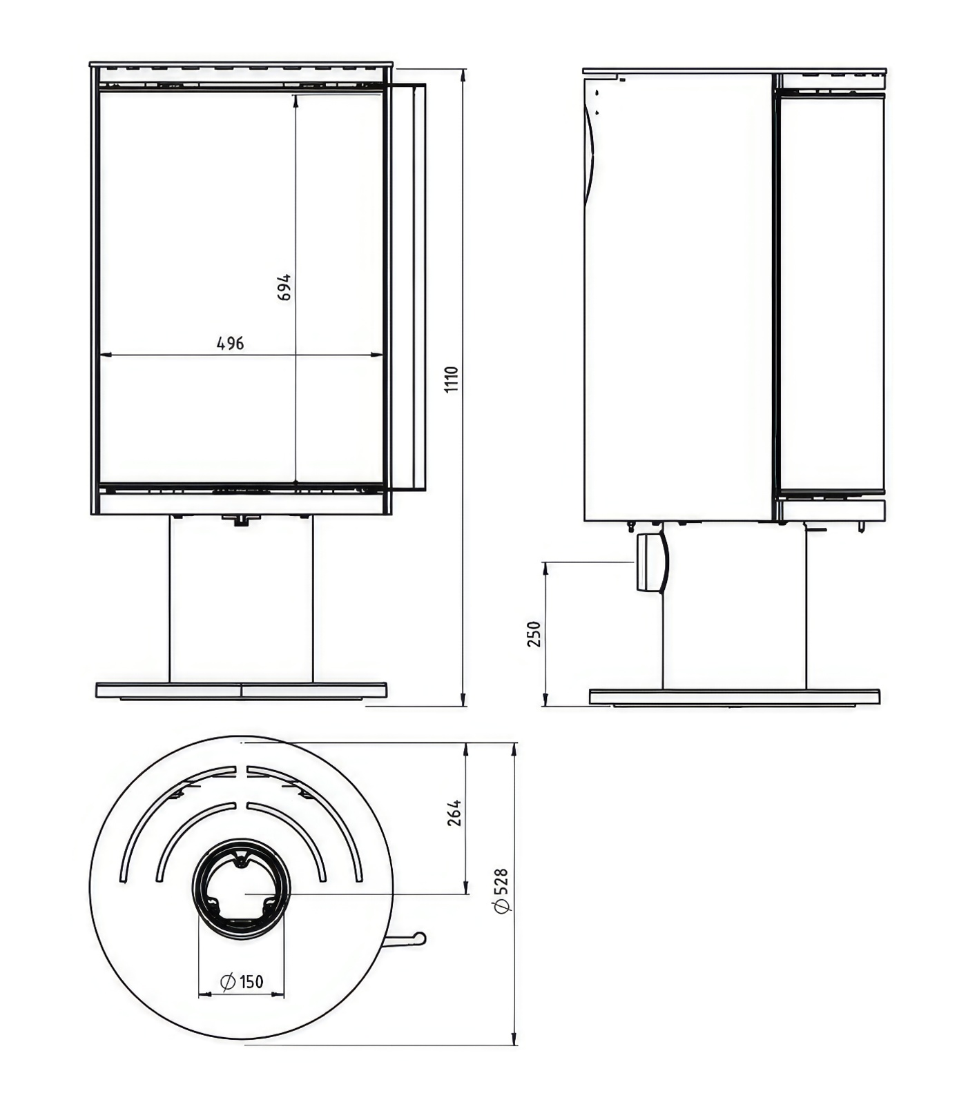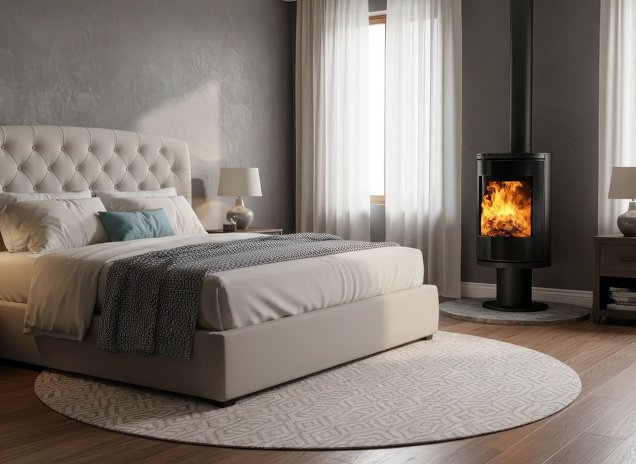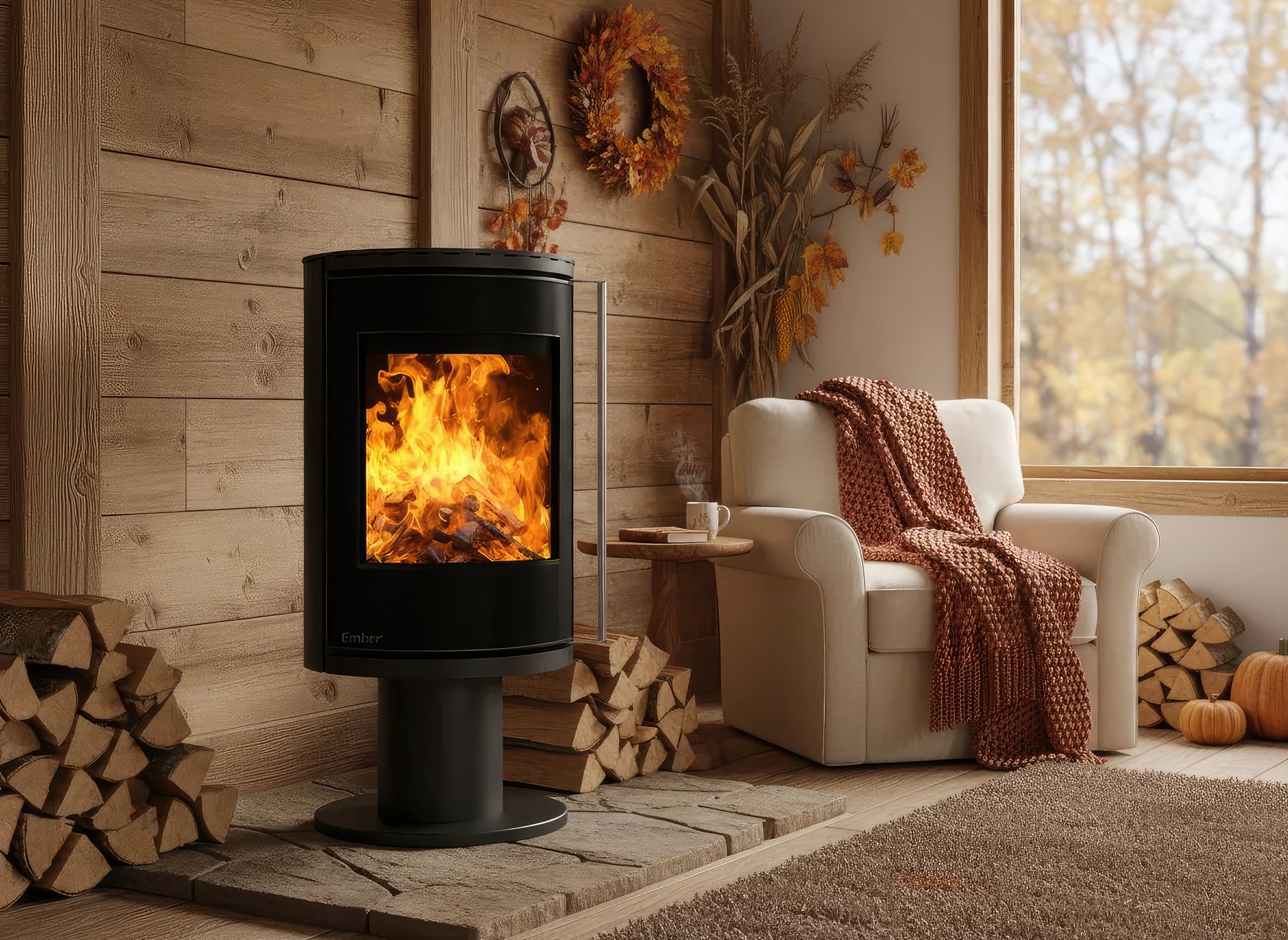 Несмотря на компактный диаметр, Ember F16 FG обладает мощностью 6 кВт и высоким КПД 81%. Топка футерована теплоемким вермикулитом, который способствует полному сгоранию топлива. Модель поддерживает подключение внешнего воздуха (CPV) через основание стойки, что делает её идеальным выбором для современных герметичных домов.