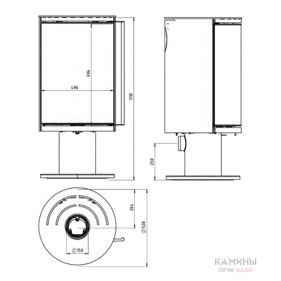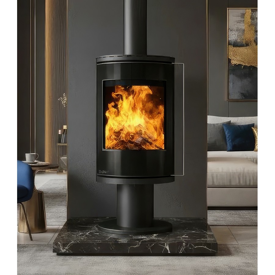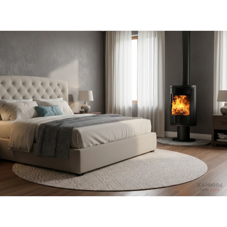 Несмотря на компактный диаметр, Ember F16 FG обладает мощностью 6 кВт и высоким КПД 81%. Топка футерована теплоемким вермикулитом, который способствует полному сгоранию топлива. Модель поддерживает подключение внешнего воздуха (CPV) через основание стойки, что делает её идеальным выбором для современных герметичных домов.