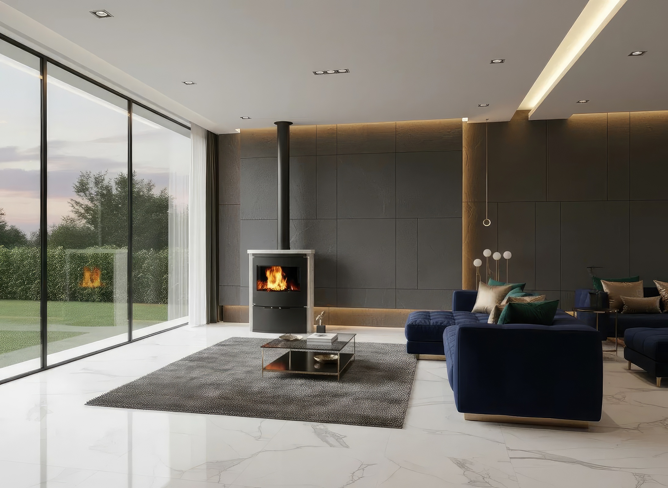 Несмотря на необычный форм-фактор, Ember O1 — это надежный отопительный прибор. Корпус из жаропрочной стали усилен внутренней футеровкой из вермикулита. Система внешнего подвода воздуха (CPV) позволяет камину работать автономно от воздуха внутри помещения, что делает его безопасным для спален и гостиных с современной вентиляцией.