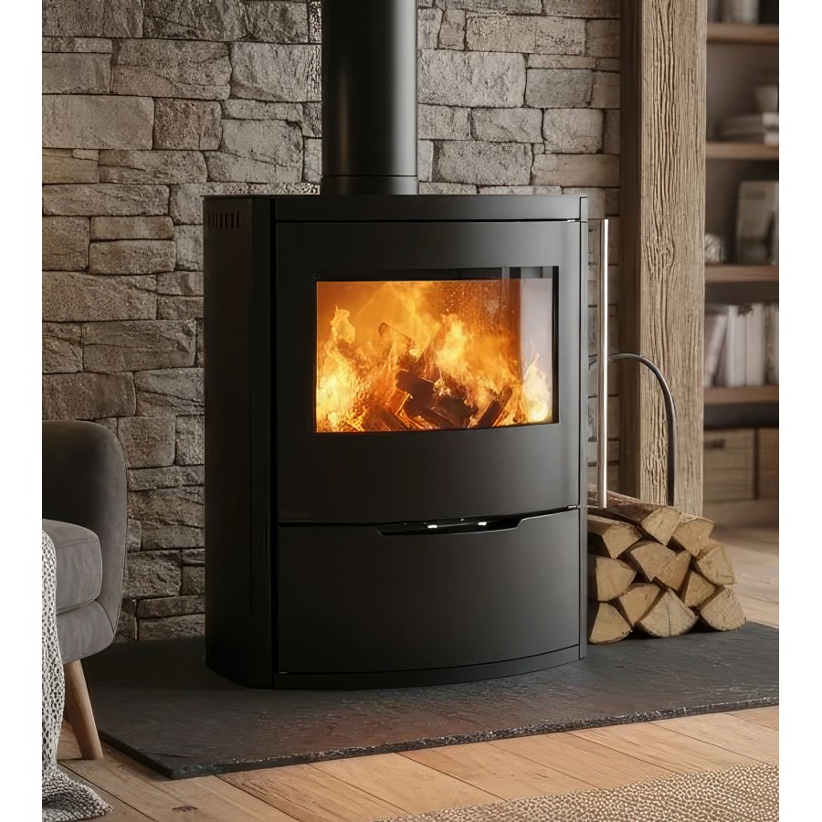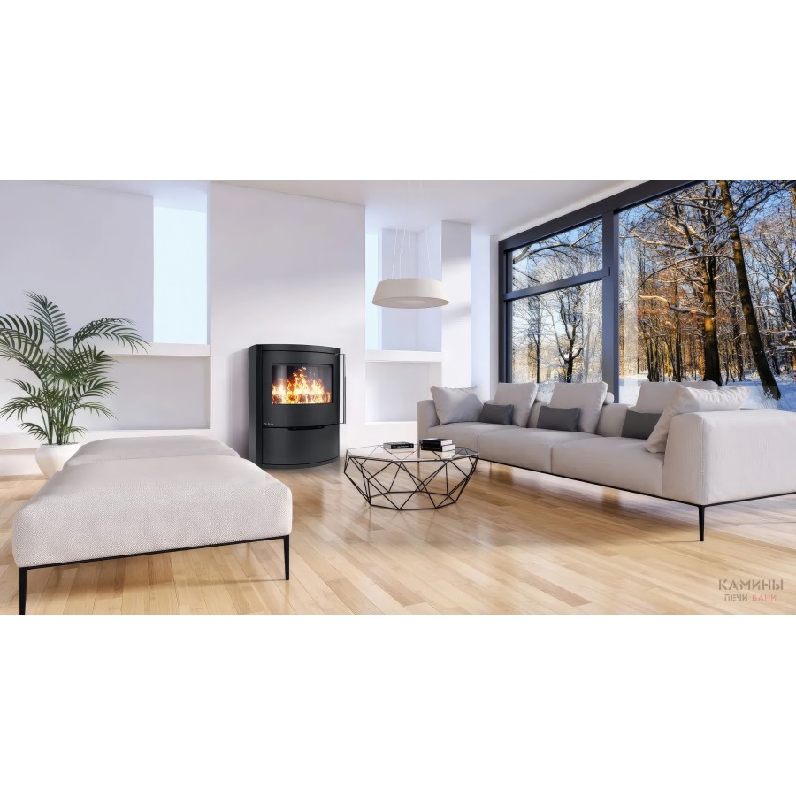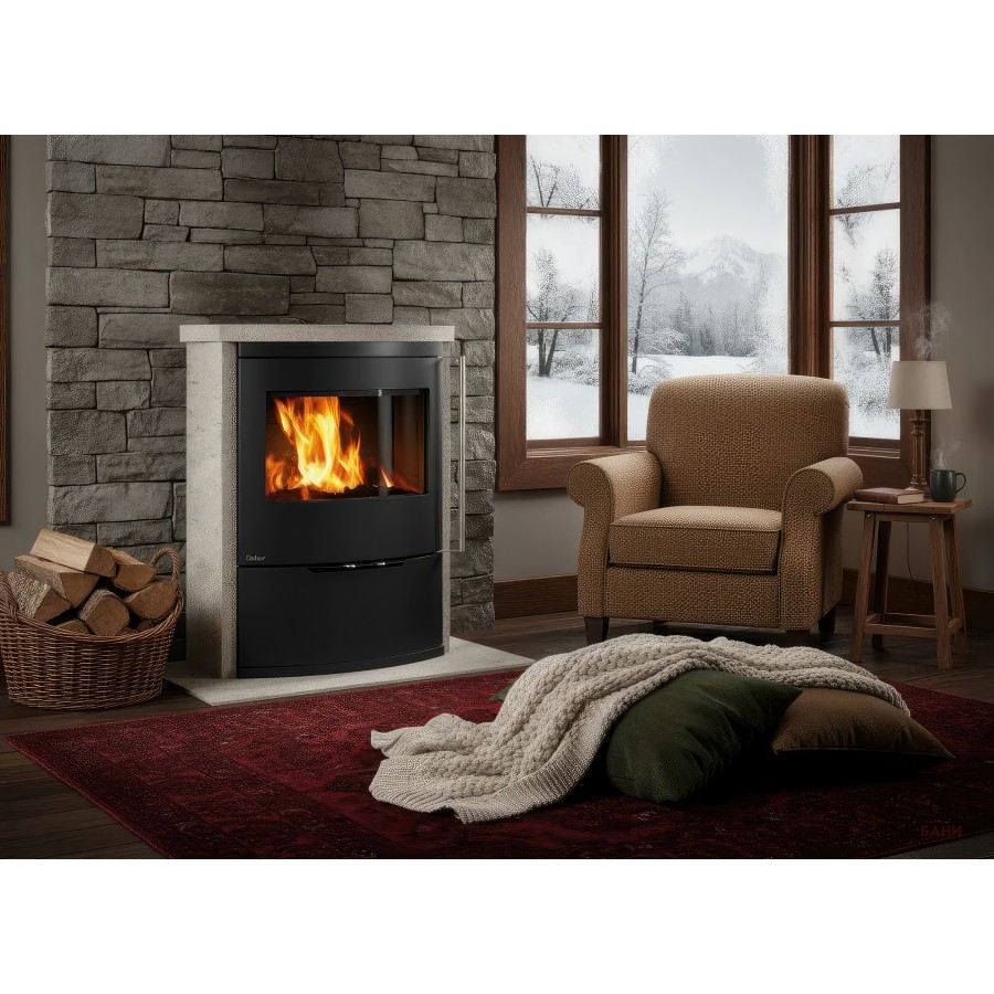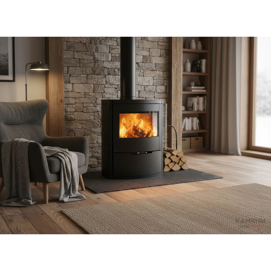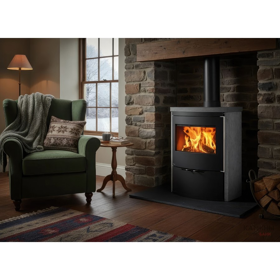 - Компактность и мощь: При глубине всего 450 мм, печь выдает 6 кВт мощности, что достаточно для обогрева до 60 м².