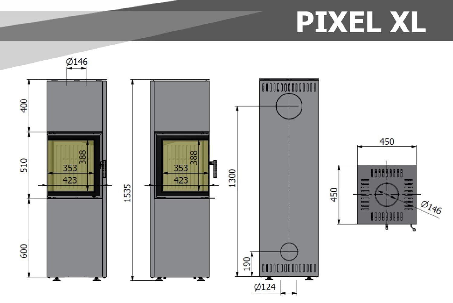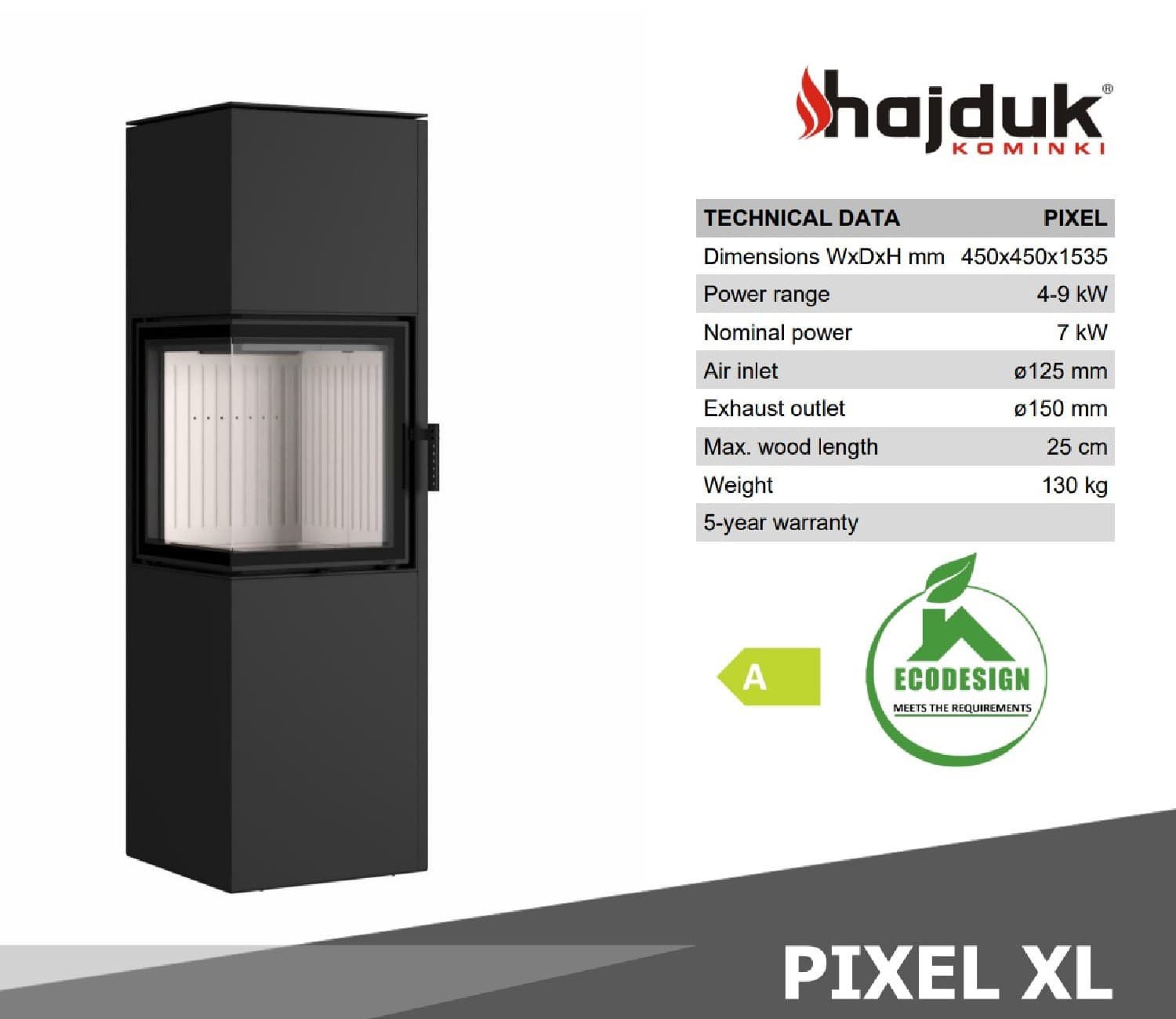 Отдельностоящая дровяная печь PIXEL современной формы сдвусторонним видением огня — идеальное предложение для людей, которые хотятиспользовать пространство в своем доме с пользой. Печи-камины PIXELпредлагаются в трех вариантах высоты: Pixel L - 133 см, Pixel XL - 153 см,Pixel XXL - 163 см. Модели отличаются высотой основания (40 или 60 см) ивысотой верхней панели (40 или 50 см).