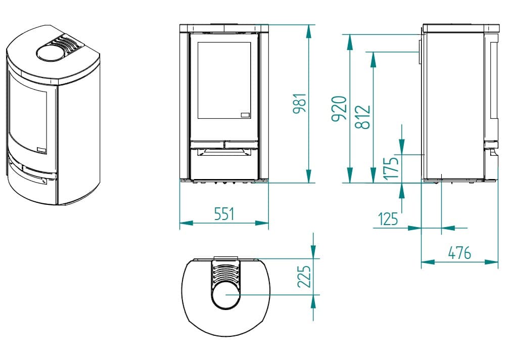 Печь-камин Jydepejsen Cosmo 971 Soapstone чертеж: