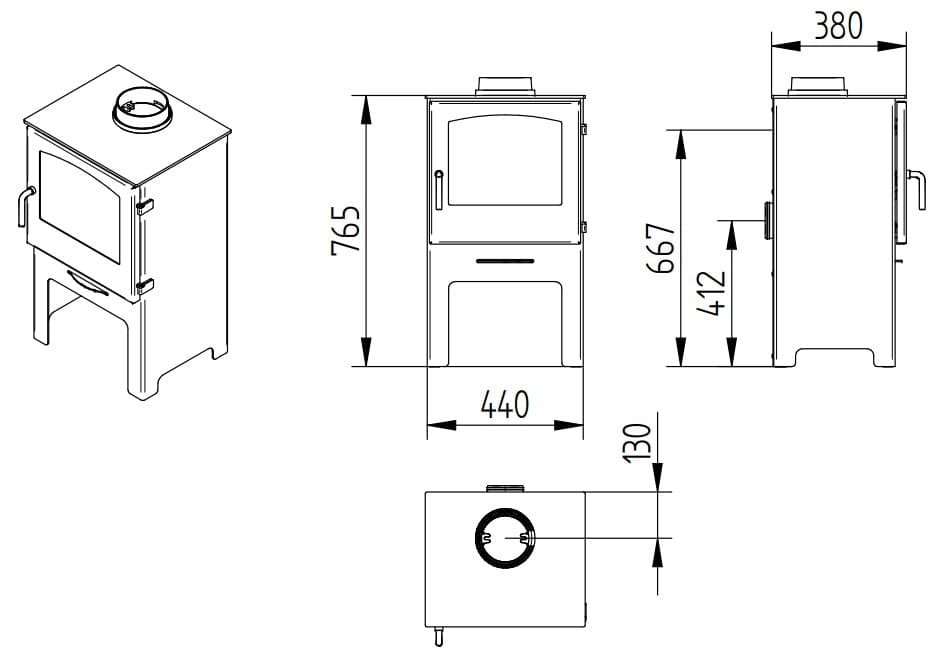 Размеры топки В×Ш×Г: 250 x 392 x 282 мм.