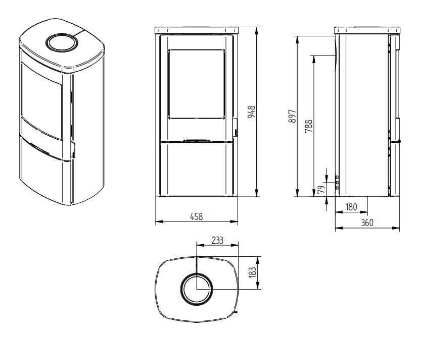 Печь-камин Jydepejsen Senza Soapstone Top чертеж: