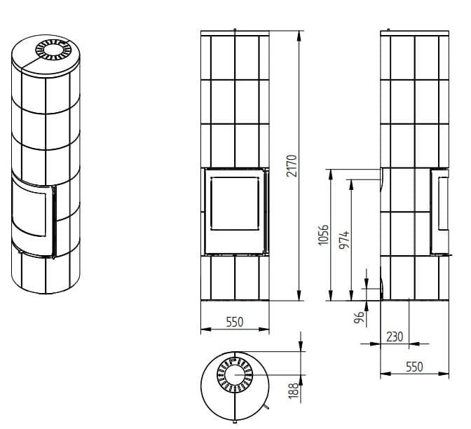 Печь-камин Jydepejsen Troja 46 Soapstone чертеж: