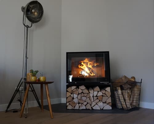 Zeta Freestanding Black - дровяная печь с основанием, которое удобно использовать для хранения дров.