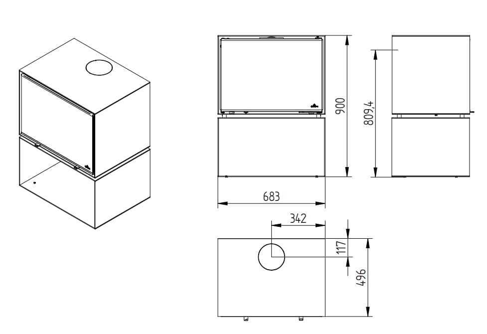 Печь-камин Jydepejsen Zeta Freestanding Black чертеж: