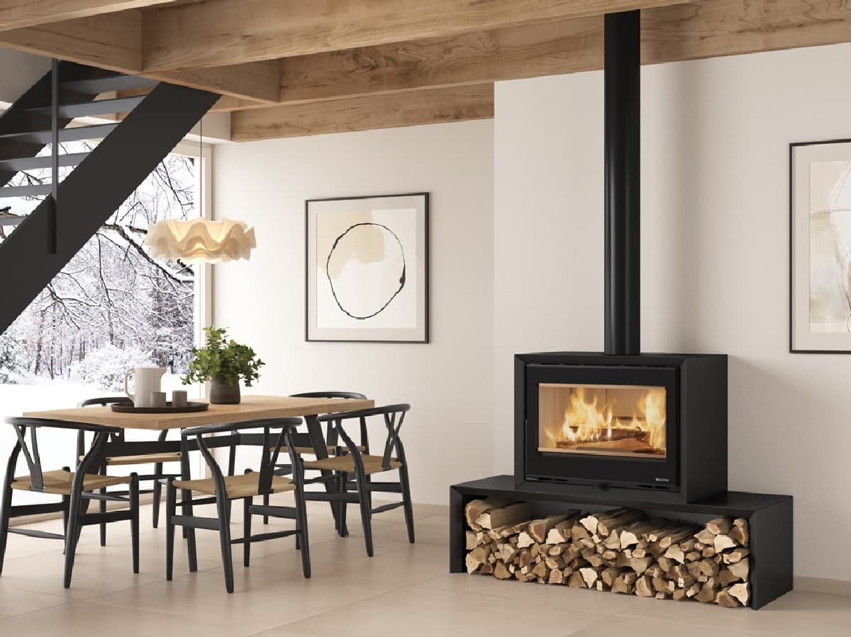 Особенности печи-камина Nordica DANTE с широкой полкой для дров: