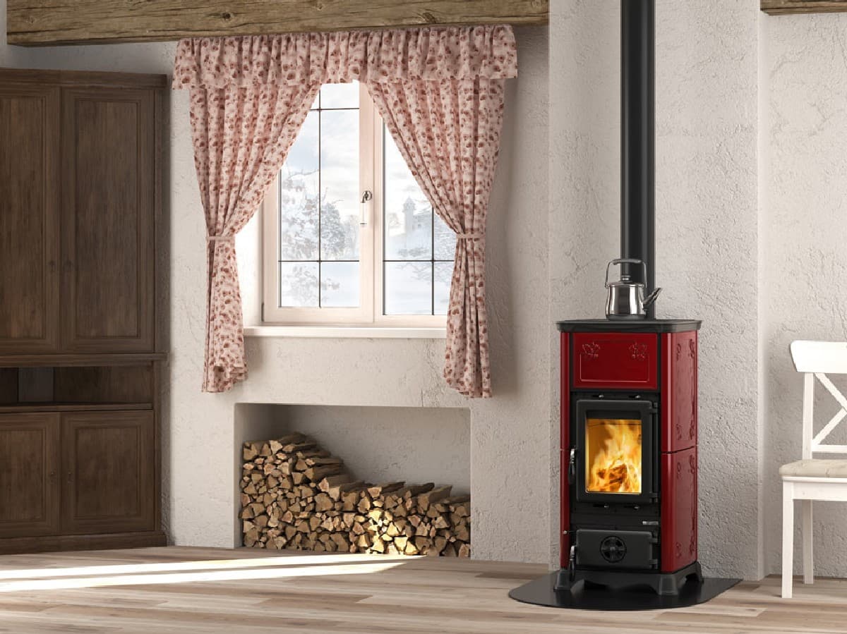 Дровяная печь-камин La Nordica Emiliana с облицовкой майоликой (керамикой) или натуральным камнем.