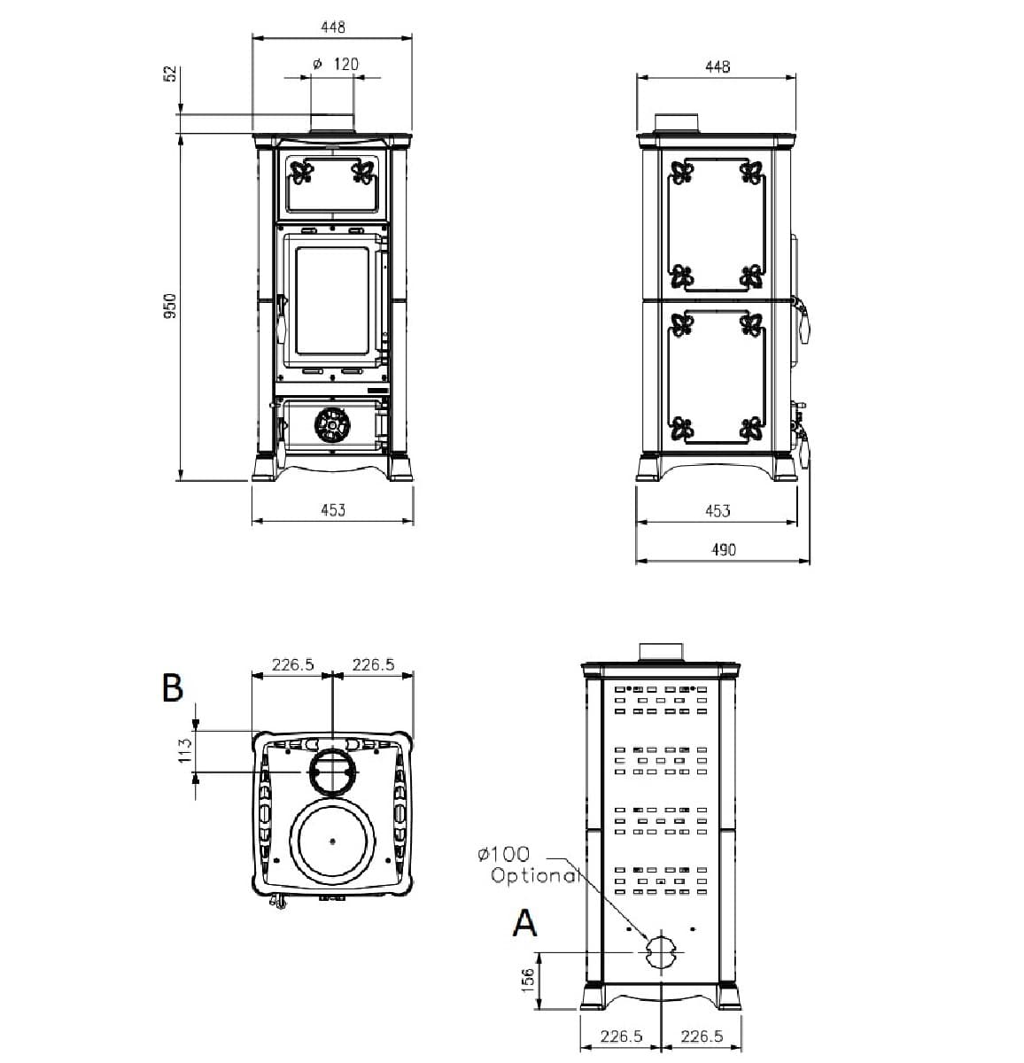 Топка печи Emiliana выполнена из высококачественного чугуна.