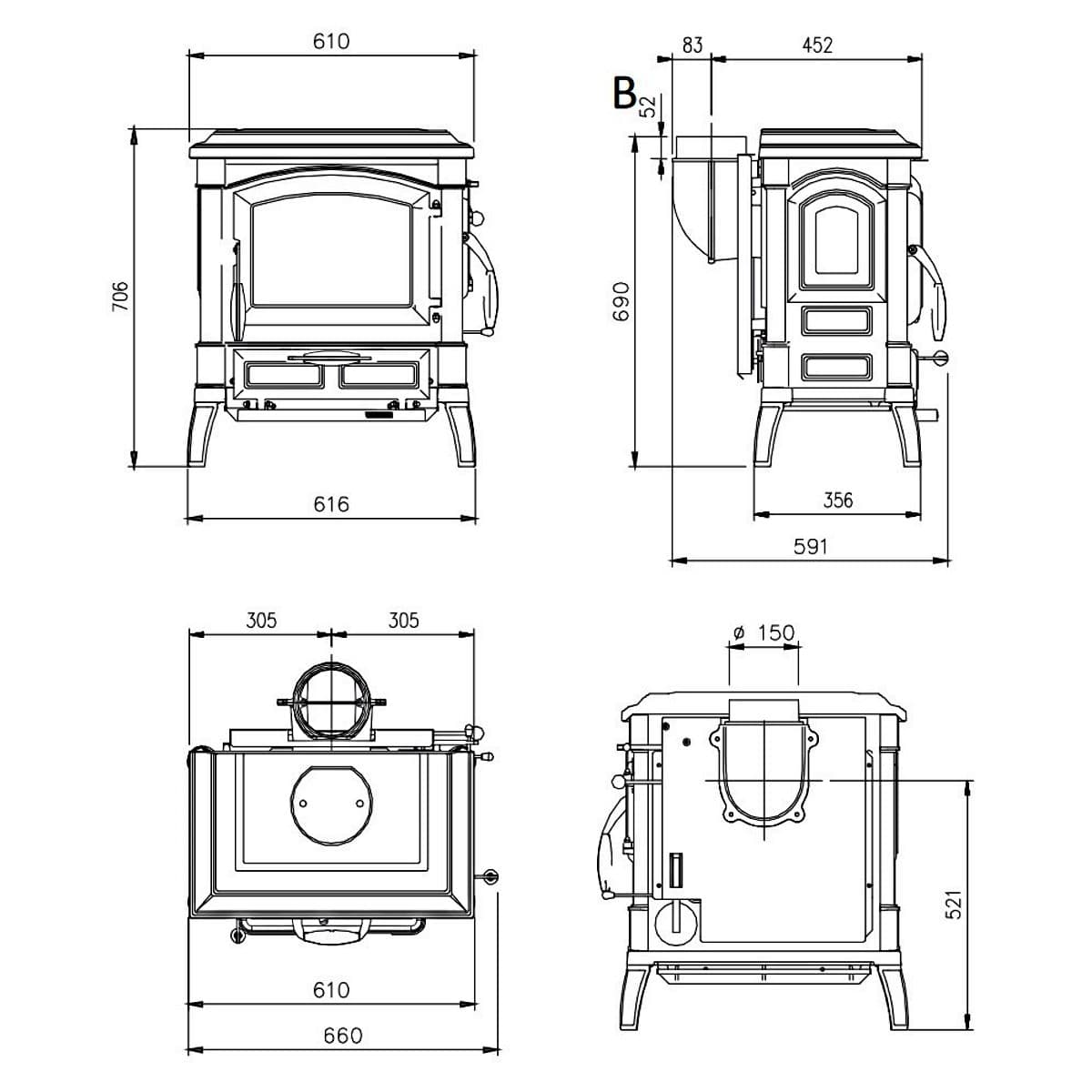 Печь, полностью выполненная из чугуна.. Фронтальная и боковая дверцы длязагрузки топлива. Чугун с высоким коэффициентом теплоотдачи. Варочнаяпанель из полированного чугуна. Топочная камера из чугуна с системойдополнительного дожига. Стеклокерамика, устойчивая к высокимтемпературам до +750