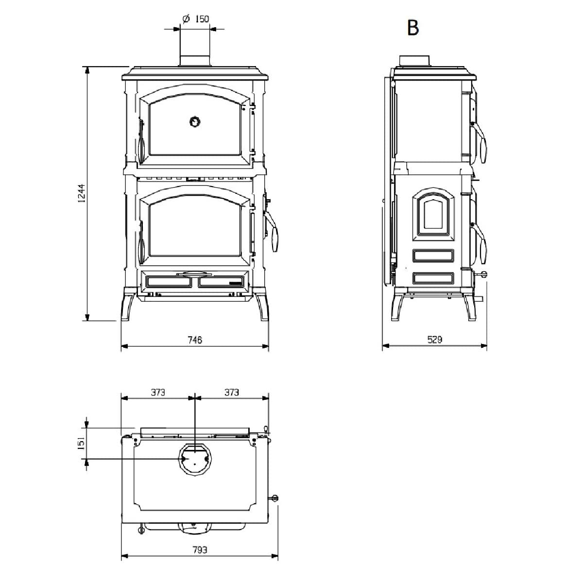 | Диаметр дымового патрубка | 150 мм |