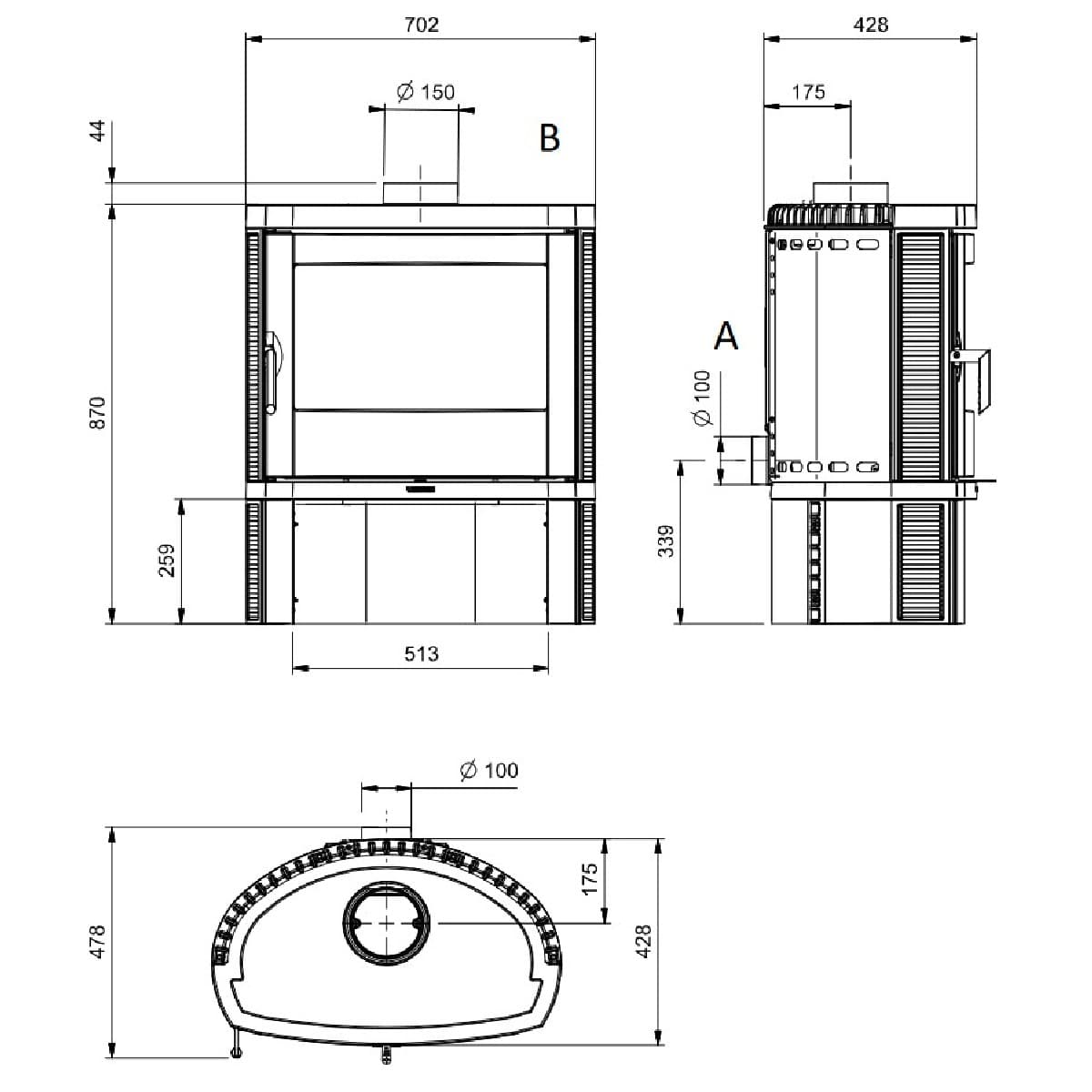 Благодаря жаропрочному стеклу,выдерживающему температуру до 750⁰ и надежно защищающему от открытогоогня, полюбоваться на горящие дрова можно не опасаясь за своюбезопасность. Подбросить которые можно как спереди, так и сбоку корпуса.