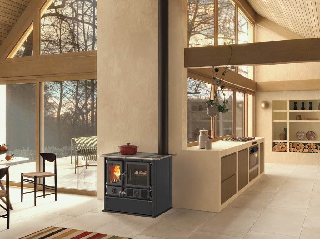Печь-камин La Nordica Rosa 5.0 Steel итальянского производства изготовлена из стали и чугуна.