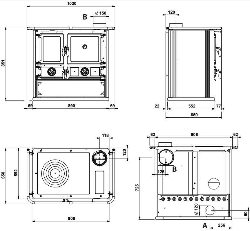 - Абсолютная герметичность дверцы: оборудование оснащено герметичной дверцей топочной камеры из высококачественного чугуна.