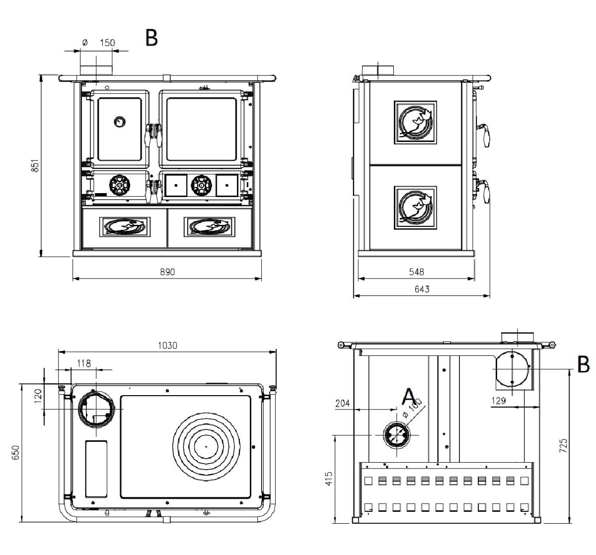 | Диаметр дымового патрубка | 150 мм |