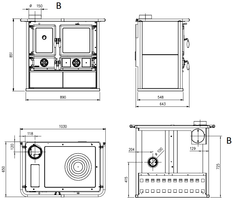 | Диаметр дымового патрубка | 150 мм |
