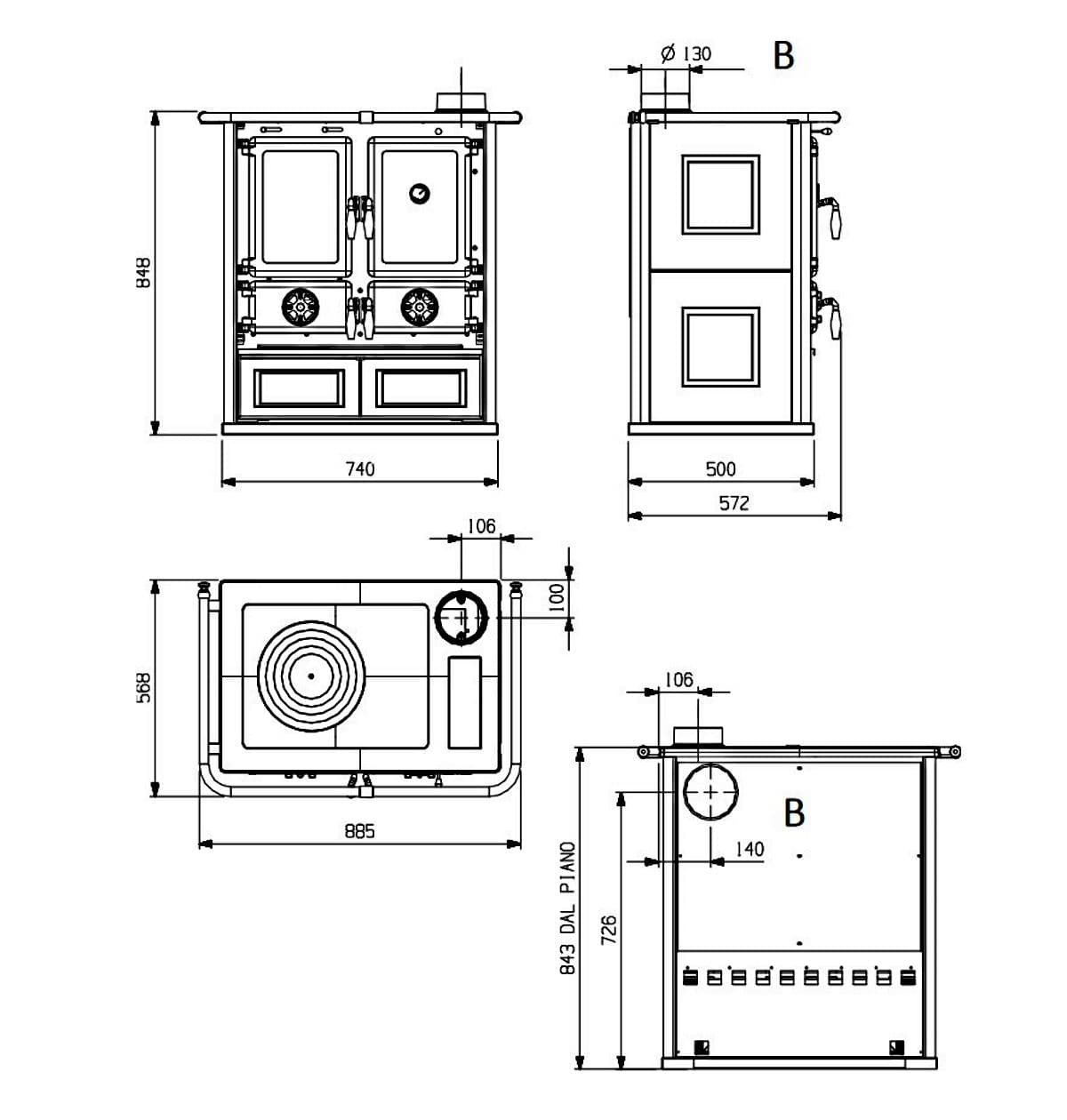 Печь-камин La Nordica Rosetta BII итальянского производства изготовлена из стали и чугуна.