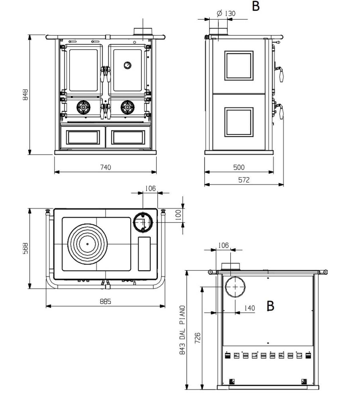 Печь-камин La Nordica Rosetta BII - Maiolica итальянского производства изготовлена из стали и чугуна.