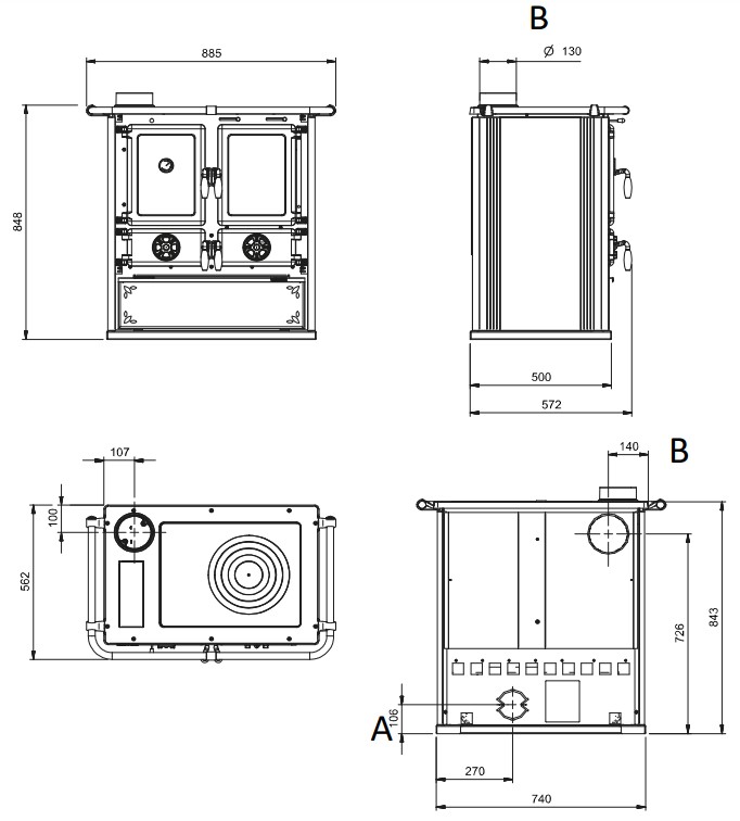 | Подключение к дымоходу | верхнее левое или заднее левое |