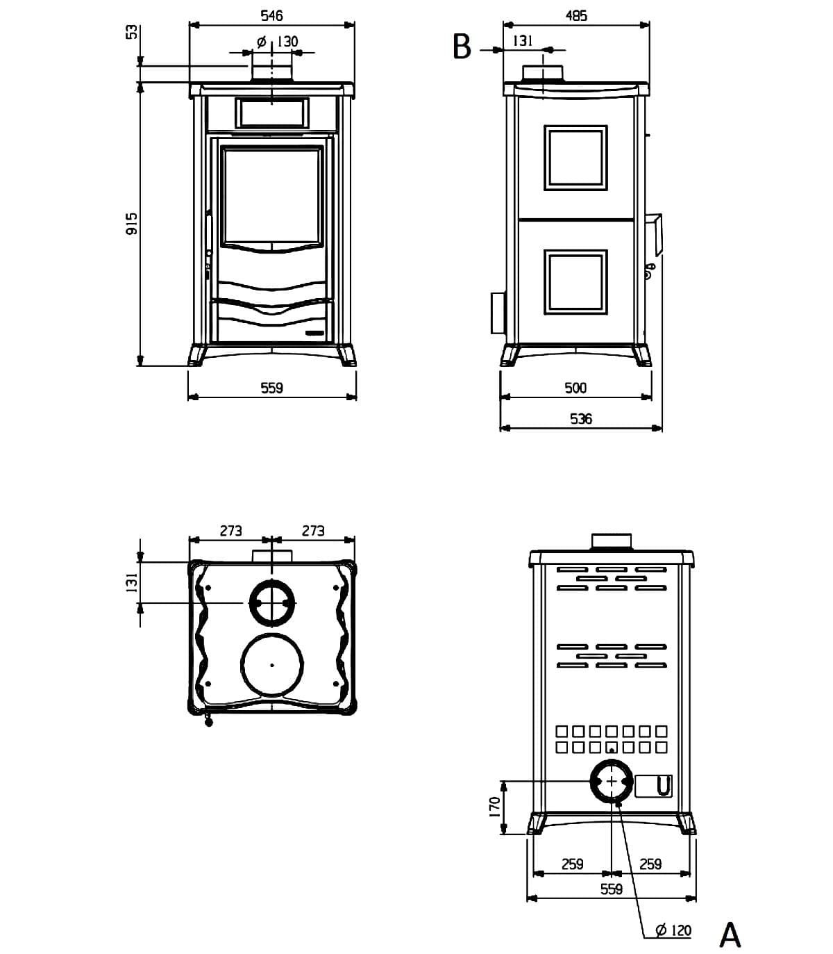 Имеет современный дизайн чугунной дверцы с большим керамическим стеклом, открывающим вид на пламя. Стекло выдерживает температуру нагрева до 750ºС.