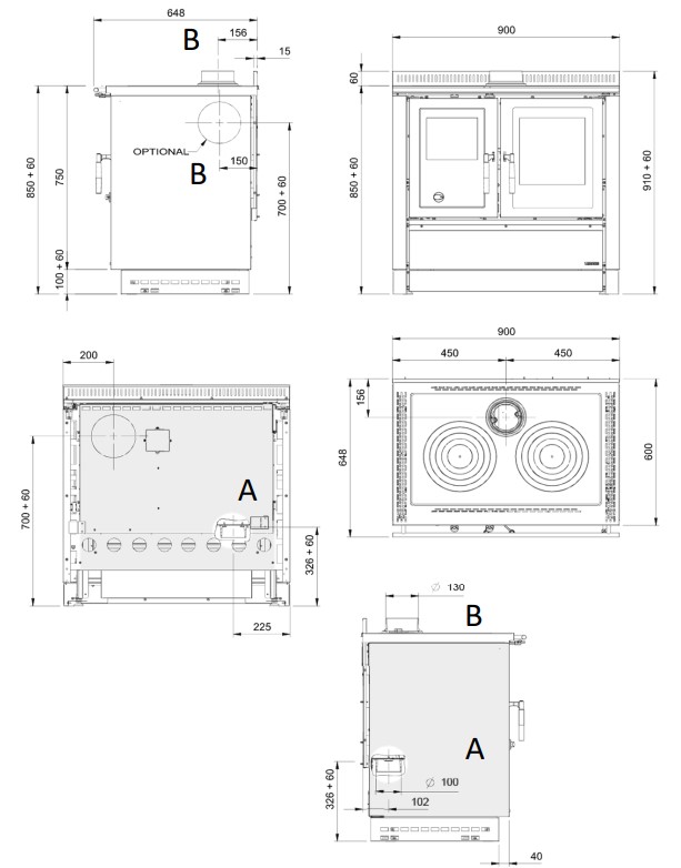 | Подключение к дымоходу | Верхнее центральное, заднее или правое боковое |