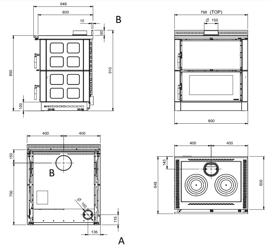 - Верхняя варочная панель и конфорки из полированного чугуна