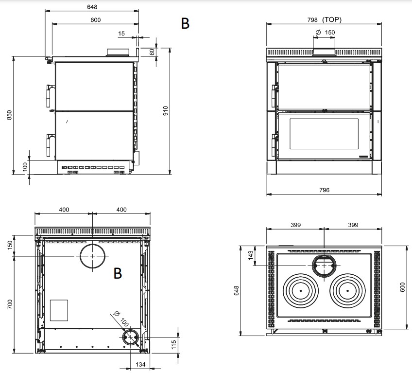 | Диаметр дымового патрубка | 150 мм |