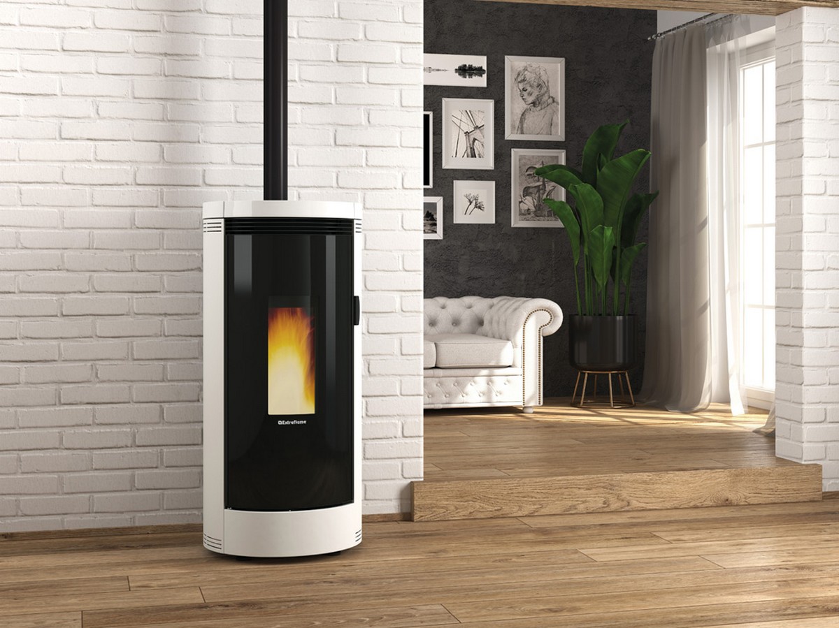 Стильный дизайн: Двойная дверь с внутренним керамическим стеклом и изогнутым наружным стеклом придают печи современный стиль.