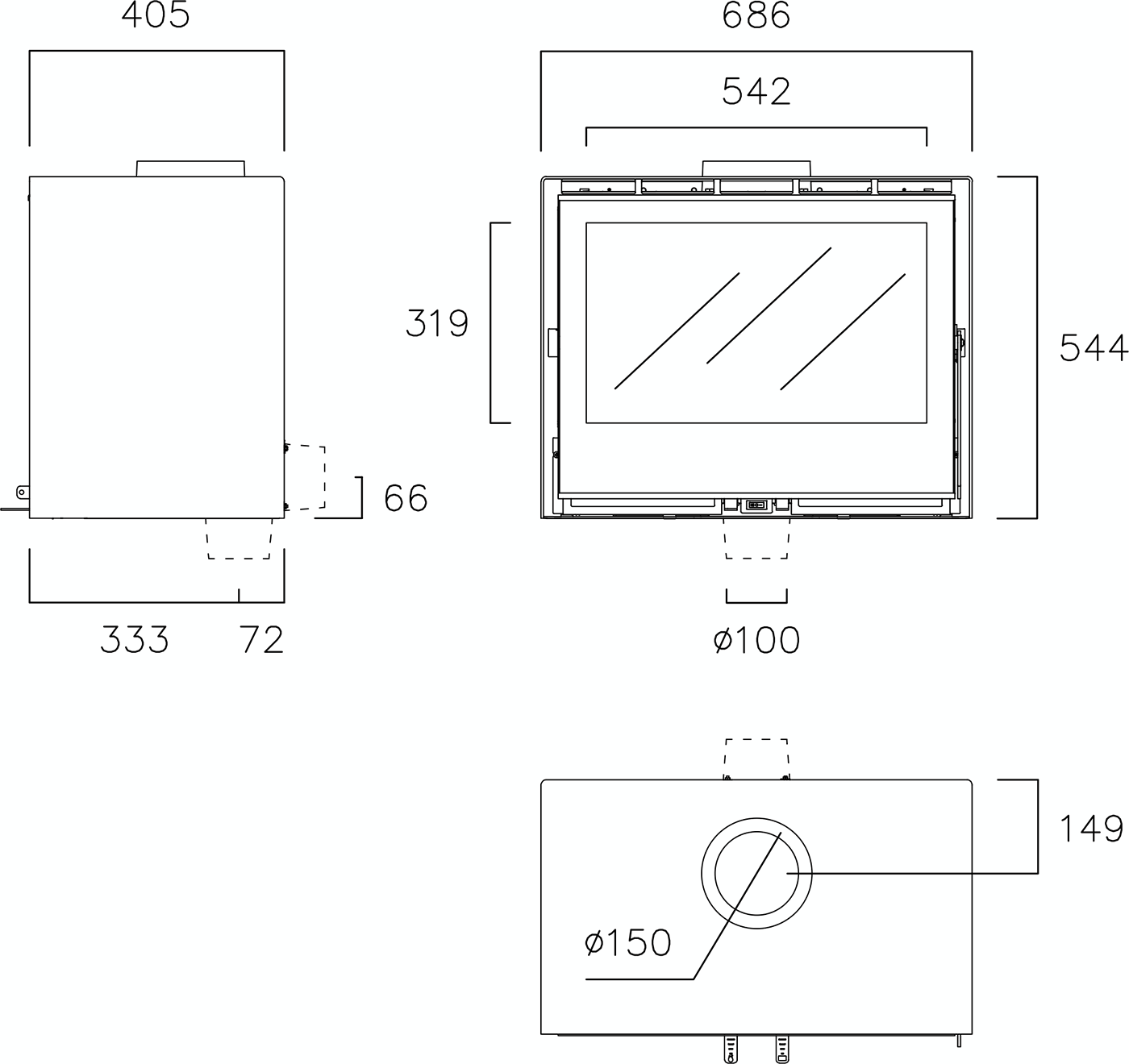 | Диаметр дымохода | 150 мм |