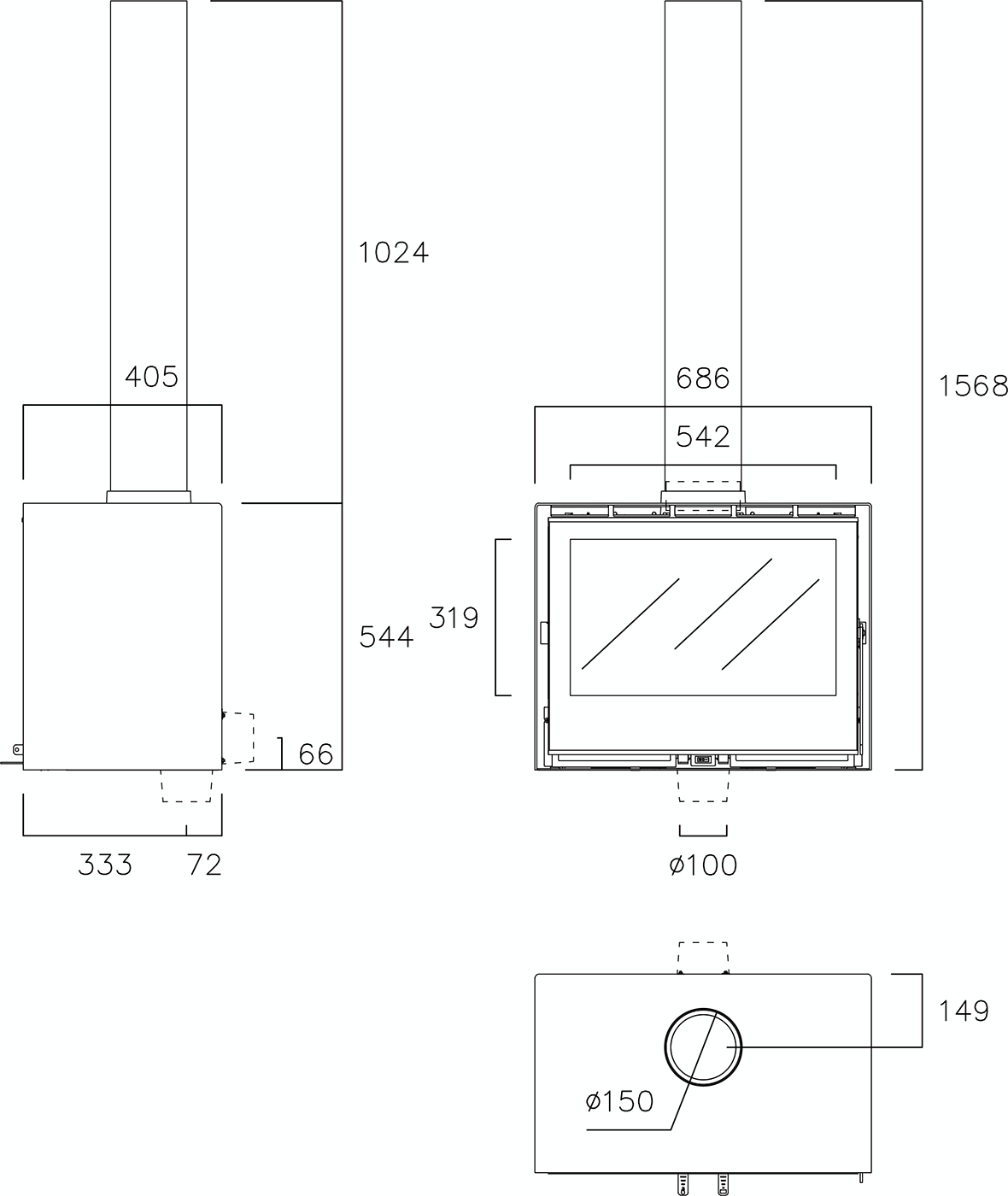 | Высота | 544 мм - без трубы; 1568 мм - с трубой |