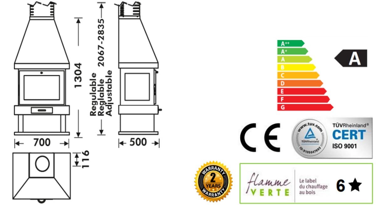 Элегантный камин Panadero Canada - обзорная печь со стальным корпусом. Данная модель оснащена достаточно мощной топкой с отделкой из вермикулита. На топке установлено три стекла, через которые открывается потрясающий вид огня. Внизу предусмотрена небольшая дровница. Дымоход прячется в высокий конвекционный кожух. Такая печь не только наполнит ваше жилище теплым воздухом, но и станет уникальным украшением интерьера жилого дома, отеля или загородной дачи.