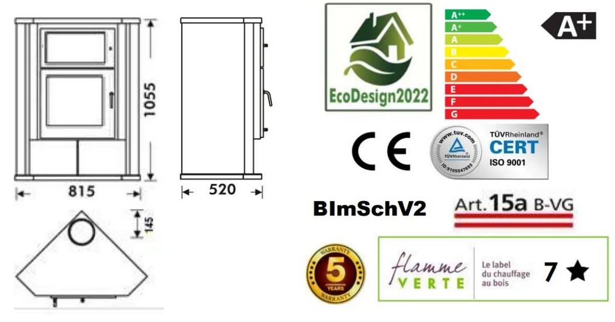 Элегантная печь-камин Panadero Coimbra - угловая отопительно-варочная печь со стальным корпусом и духовым шкафом. Внизу предусмотрена небольшая дровница. Стальной корпус нагревается всего за 15-20 минут, излучая тепло как во время топочного процесса, так и еще несколько часов после прекращения горения огня в камере. Такая печь не только наполнит ваше жилище теплым воздухом, но и станет уникальным украшением интерьера жилого дома, отеля или загородной дачи.