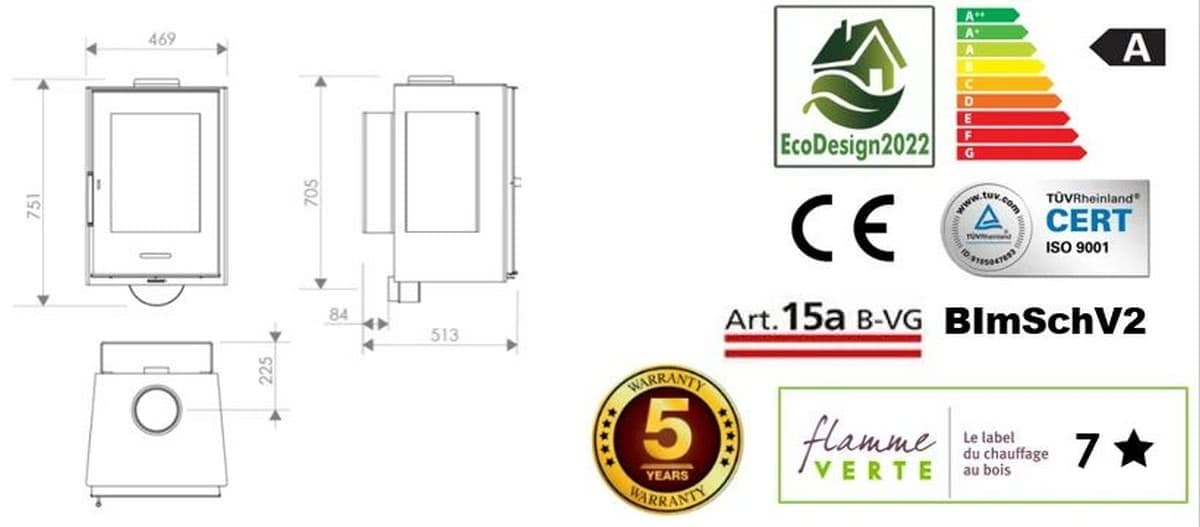 Дровяная печь Panadero Inca Wall выделяется своим современным дизайном со стеклянными стенками по бокам. Таким образом, вы можете наслаждаться своим пламенем из любой точки комнаты. Он крепится к стене, что позволяет хранить дрова внизу. Его применяют для обогрева любого помещения приятным и комфортным теплом. Имеет герметичную камеру сгорания, облицованную пластинами из вермикулита, с системой тройного сгорания. Он изготовлен из стали 5 мм, решетка из чугуна, стекло устойчиво к температурам до 750 ° С. Он оснащен системой очистки стекла, предотвращающей потемнение стекла завесой горячего воздуха перед стеклом. Благодаря сертификату Eco Design 2022 он обеспечивает полное сгорание с бережным отношением к окружающей среде для достижения необходимых преимуществ, гораздо более требовательных, чем те, которые получены с помощью сертификата CE.
